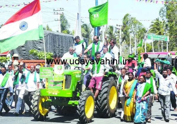ಉದಯವಾಹಿನಿ, ದೆಹಲಿ: ಗಡಿಯಲ್ಲಿ ಕೃಷಿ ಉತ್ಪನ್ನಗಳಿಗೆ ಎಂಎಸ್ಪಿ ಗ್ಯಾರಂಟಿ ಕಾನೂನು ಜಾರಿಗೆ ಒತ್ತಾಯಿಸಿ ರಾಷ್ಟ್ರೀಯ ರೈತ ನಾಯಕ ದಲೈವಾಲಾ ನಡೆಸುತ್ತಿರುವ ಉಪವಾಸ ಸತ್ಯಾಗ್ರಹ ಬೆಂಬಲಿಸಿ ಮೈಸೂರಿನಲ್ಲಿ ಕಬ್ಬು ಬೆಳೆಗಾರರ ಸಂಘದಿಂದ ಟ್ರ್ಯಾಕ್ಟರ್ ರ್ಯಾಲಿ ನಡೆಸಲಾಯಿತು. ಪ್ರತಿಭಟನಾ ರ್ಯಾಲಿಯಲ್ಲಿ ರೈತ ಮುಖಂಡರಾದ ಹತ್ತಳ್ಳಿ ದೇವರಾಜ್, ಬರಡನಪುರ ನಾಗರಾಜ್, ಪಿ.ಸೋಮಶೇಖರ್, ಕಿರಗಸೂರು ಶಂಕರ್, ನೀಲಕಂಠಪ್ಪ, ವಿಜಯೇಂದ್ರ, ಸಿದ್ದೇಶ್, ವೆಂಕಟೇಶ್, ರಾಜೇಶ್, ಪ್ರಭುಸ್ವಾಮಿ, ಮಂಜುನಾಥ್, ಗಿರೀಶ್, ಕೆಂಡಗಣಸ್ವಾಮಿ, ಸ್ವಾಮಿ ಪ್ರಸಾದ್ ನಾಯ್ಕ್, ಪ್ರದೀಪ್ ಗೌರಿಶಂಕರ್, ಗುರುಸ್ವಾಮಿ, ಕೆಂಡಗಂಣಪ್ಪ, ಸುನಿಲ್, ಕಮಲಮ್ಮ, ಕೂಡನಹಳ್ಳಿ ಸೋಮಣ್ಣ, ನಾಗೇಶ್, ಸೂರಿ, ಅರುಣ್, ಲಿಂಗಣ್ಣ, ಕಾರ್ಟೂರ್ ಮಾದೇವಸ್ವಾಮಿ, ನಾಗೇಶ, ಮಾರ್ವಳ್ಳಿ ಬಸವರಾಜ್, ಚುಂಚರಾಯನಹುಂಡಿ ಬಸವರಾಜಪ್ಪ ಸೇರಿದಂತೆ ಹಲವರು ಭಾಗವಹಿಸಿದ್ದರು.