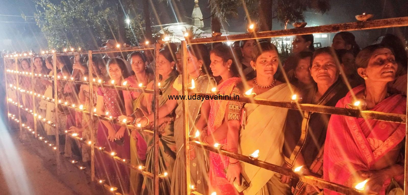 ದೇವಸ್ಥಾನದ ಆವರಣದಲ್ಲಿ ಇಟ್ಟಿದ್ದ ದೀಪಸ್ತಂಭಗಳಲ್ಲಿ ಪ್ರತಿಯೊಬ್ಬರೂ ಬತ್ತಿಗಳನ್ನು ಬೆಳಗಿಸಲು ಮುಂದಾದರು. ಹೊಸ ಬಟ್ಟೆಗಳನ್ನು ಧರಿಸಿ, ಅಲಂಕಾರ ಮಾಡಿಕೊಂಡು, ಹಣೆಗೆ ವಿಭೂತಿ ಧರಿಸಿ ಬಂದಿದ್ದ ಜನ ಬರಿಗಾಲಲ್ಲೇ ಓಡಾಡಿ ದೀಪಗಳನ್ನು ಬೆಳಗಿ ಸಂಭ್ರಮಿಸಿದರು. ಮಹಿಳೆಯರು, ಪುರುಷರು, ಯುವಕ-ಯುವತಿಯರು, ಹಿರಿಯರು ಗುಂಪು ಗುಂಪಾಗಿ ಬಂದು ಹಣತೆ ಹಚ್ಚಿದರು.