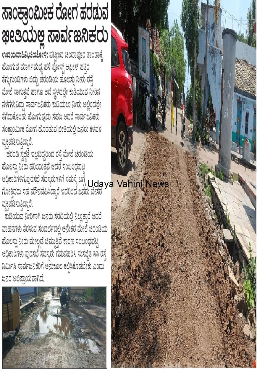 ಪುರಸಭೆ ಮುಖ್ಯಾಧಿಕಾರಿ ಕಾಶಿನಾಥ ಧನ್ನಿ ಪತ್ರಕರ್ತರೊಂದಿಗೆ ಮಾತನಾಡಿ ಉದಯವಾಹಿನಿ,ದಿನಪತ್ರಿಕೆಯಲ್ಲಿ ಜೂ.4ರಂದು ಸಾಂಕ್ರಾಮಿಕ ರೋಗ ಹರಡುವ ಭೀತಿಯಲ್ಲಿ ಸಾರ್ವಜನಿಕರು ಎಂಬ ಸುದ್ದಿ ಭೀತ್ತರಿಸಿ ನಂತರ ನಮಗೆ ಗೋತ್ತಾಯಿತು ತಕ್ಷಣ ರಸ್ತೆಗೆ ತಾತ್ಕಾಲಿಕವಾಗಿ ಉತ್ತಮ ಮರುಬ್ ಹಾಕಿ ತೆಗ್ಗುಗುಂಡಿಗಳು ಮುಚ್ಚಲಾಗಿದೆ ಆದಷ್ಟೂ ಶೀಘ್ರದಲ್ಲೇ ಕ್ರೀಯಾಯೋಜನೆ ಸಿದ್ದಪಡಿಸಿಕೊಂಡು ಆ ರಸ್ತೆಗೆ ಸಿಸಿರಸ್ತೆ ಮಾಡಲಾಗುವುದು ಎಂದು ಹೇಳಿದರು.