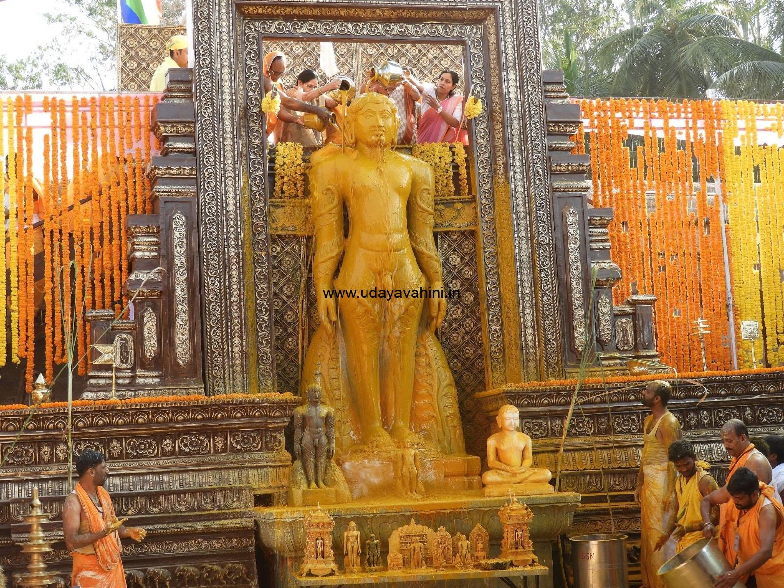 ಪ್ರಥಮವಾಗಿ ಗುಳ್ಳುಕಾಯಜ್ಜಿಯ ಕಲಶ, ಚಾವುಂಡರಾಯ ಕಲಶಗಳಿಂದ ಜಲಾಭಿಷೇಕ ನಡೆಸಲು ಆಚಾರ್ಯರು ಚಾಲನೆ ನೀಡಿದರು. ನಂತರ ಕಾಶಿಯ ಗಂಗಾ ಜಲ, ಪ್ರಯಾಗರಾಜ್ನ ಸಂಗಮ ನದಿಗಳ ಜಲ, ಕೃಷ್ಣಾ, ಕಾವೇರಿ, ಗೋದಾವರಿ, ತುಂಗಾ, ಭದ್ರಾ ಮುಂತಾದ ನದಿಗಳಿಂದ ಸಂಗ್ರಹಿಸಿದ್ದ ಜಲದಿಂದ ಜಲಾಭಿಷೇಕಗಳು ನೆರವೇರಿದವು.ನಮ್ಮ ಆತ್ಮವೂ ಸಹ ಶುದ್ಧವಿರಲಿ ಎಂಬ ಭಾವನೆಯಿಂದ ನೈಸರ್ಗಿಕವಾಗಿ ಶುದ್ಧವಾಗಿರುವ ಎಳನೀರನ್ನು ಭಗವಂತನಿಗೆ ಅಭಿಷೇಕ ಮಾಡಲಾಯಿತು. ನಂತರ ಮೂರ್ತಿಗೆ ಕಬ್ಬಿನ ಹಾಲನ್ನು ಕೊಡಗಳಿಂದ ನೆತ್ತಿಯ ಮೇಲೆ ಹಾಕಿ ಅಭಿಷೇಕ ಮಾಡುವಾಗ ಭಗವಂತನು ಹಸಿರು ಬಣ್ಣಗಳಲ್ಲಿ ಕಂಗೊಳಿಸುತ್ತಿತ್ತು.