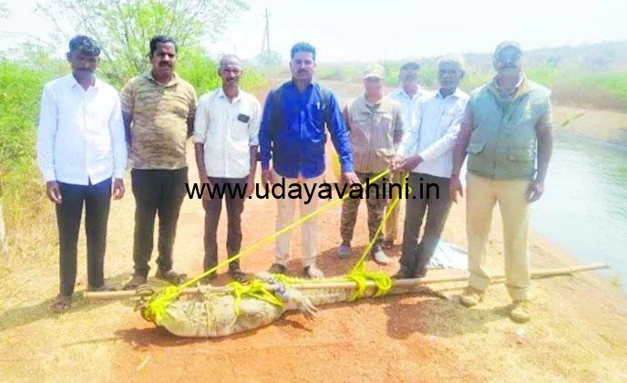 ಉದಯವಾಹಿನಿ, ಮುನವಳ್ಳಿ: ಕಲ್ಲೊಳ್ಳಿ ಗ್ರಾಮದ ಸಮಿಪ ಮಲಪ್ರಭಾ ಎಡದಂಡೆ ಕಾಲುವೆಯಲ್ಲಿ ಶುಕ್ರವಾರ ಬೃಹತ್ ಗಾತ್ರದ ಮೊಸಳೆ ಕಂಡುಬಂದಿದ್ದು ರೈತರು ಅರಣ್ಯ ಇಲಾಖೆಯವರಿಗೆ ತಿಳಿಸಿ ನಂತರ ಅರಣ್ಯ ಇಲಾಖೆಯವರು ಸ್ಪಂದಿಸಿ ಸಿಬ್ಬಂದಿಗಳು ಹಾಗೂ ಅಗ್ನಿಶಾಮಕ ಸಿಬ್ಬಂದಿ ಸಹಾಯದಿಂದ ಮೊಸಳೆ ರಕ್ಷಿಸಿ ಮರಳಿ ಮಲಪ್ರಭಾ ಜಲಾಶಯಕ್ಕೆ ಬಿಟ್ಟಿದ್ದಾರೆ.
