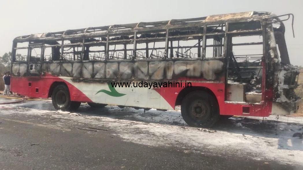 ಇದರಿಂದ ಭಯಭೀತರಾದ ಪ್ರಯಾಣಿಕರು ಬಸ್ನಿಂದ ಕೆಳಗಿಳಿಯುತ್ತಿದ್ದಂತೆ ಹೊಗೆ ಬೆಂಕಿಯಾಗಿ ಇಡೀ ಬಸ್ ಧಗ ಧಗನೇ ಹೊತ್ತಿಉರಿದಿದೆ. ತಕ್ಷಣ ಸ್ಥಳಕೆ ಆಗಮಿಸಿದ ಅಗ್ನಿ ಶಾಮಕ ಸಿಬ್ಬಂದಿ ಬೆಂಕಿ ನಂದಿಸಿದರು.’ಎಂಜಿನ್ಲ್ಲಿ ಹೊಗೆ ಕಾಣಿಸಿಕೊಂಡ ಕೂಡಲೇ ಬಸ್ಸಿನಲ್ಲಿದ್ದ 25 ಪ್ರಯಾಣಿಕರನ್ನು ಕೆಳಗೆ ಇಳಿಸಲಾಗಿದೆ. ಹೀಗಾಗಿ ಯಾವುದೇ ಅನಾಹುತ ಆಗಿಲ್ಲ’ ಎಂದು ಇಲ್ಲಿಯ ಘಟಕ ವ್ಯವಸ್ಥಾಪಕ ರಾಜೇಂದ್ರ ‘ ತಿಳಿಸಿದ್ದಾರೆ.