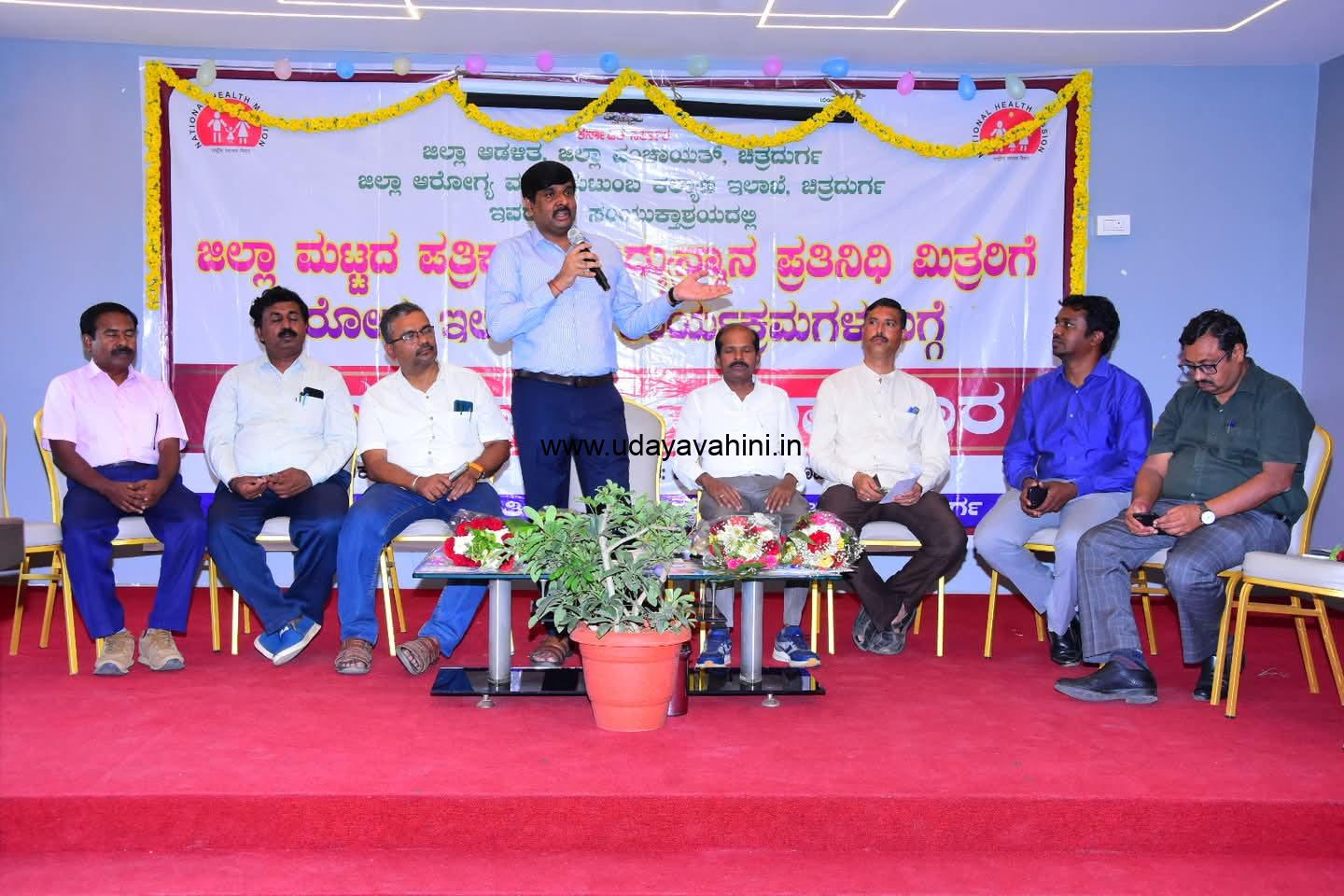 ಜಿಲ್ಲಾ ಕಾರ್ಯನಿರತ ಪತ್ರಕರ್ತರ ಸಂಘದ ಅಧ್ಯಕ್ಷ ದಿನೇಶ್ ಬಿ ಗೌಡಗೆರೆ ಮಾತನಾಡಿ, ಮಾಧ್ಯಮ ಕ್ಷೇತ್ರದಲ್ಲಿ ಪತ್ರಕರ್ತರು ಒತ್ತಡದಲ್ಲಿಯೇ ಕೆಲಸ ನಿರ್ವಹಿಸುತ್ತಾರೆ. ಆರೋಗ್ಯದ ಬಗ್ಗೆ ಗಮನ ಸಹ ಹರಿಸುವುದಿಲ್ಲ. ಇದರಿಂದಾಗಿ ಚಿಕ್ಕ ವಯಸ್ಸಿನಲ್ಲಿಯೇ ರಕ್ತದೊತ್ತಡ, ಸಕ್ಕರೆ ಖಾಯಿಲೆಗಳಿಗೆ ತುತ್ತಾಗುತ್ತಾರೆ. ಕಳೆದ ವರ್ಷ ರಾಜ್ಯಾದ್ಯಂತ ಬಹಳಷ್ಟು ಪತ್ರಕರ್ತರು ಅಕಾಲಿಕ ಮರಣಕ್ಕೆ ತುತ್ತಾಗಿದ್ದಾರೆ. ಆರೋಗ್ಯ ಇಲಾಖೆ ವತಿಯಿಂದ ಪತ್ರಕರ್ತರಿಗಾಗಿ ಉಚಿತ ಚಿಕಿತ್ಸಾ ಶಿಬಿರಗಳನ್ನು ಆಯೋಜಿಸಬೇಕು. ಇಲಾಖೆ ಐಇಸಿ ಚಟುವಟಿಕೆಗಳ ಅಡಿ ಪ್ರಮುಖ ಸಾರ್ವಜನಿಕ ನಿವೇದನೆ ಹಾಗೂ ಪ್ರಕಟಣೆಗಳನ್ನು ಜಾಹೀರಾತು ರೂಪದಲ್ಲಿ ಪತ್ರಿಕೆಗಳಿಗೆ ಬಿಡುಗಡೆ ಮಾಡಿದರೆ ಸ್ಥಳೀಯ ಪತ್ರಿಕೆಗಳಿಗೆ ಆದಾಯ ದೊರಕುತ್ತದೆ. ಈ ನಿಟ್ಟಿನಲ್ಲಿ ಜಿಲ್ಲಾ ಆರೋಗ್ಯ ಮತ್ತು ಕುಟುಂಬ ಕಲ್ಯಾಣಾಧಿಕಾರಿಗಳು ಗಮನ ಹರಿಸುವಂತೆ ಕೋರಿದರು. ಕಾರ್ಯಕ್ರಮದಲ್ಲಿ ಜಿಲ್ಲಾ ಆರ್.ಸಿ.ಹೆಚ್ ಅಧಿಕಾರಿ ಡಾ.ಅಭಿನವ್, ಕಾರ್ಯಕ್ರಮ ಅನುಷ್ಠಾನಾಧಿಕಾರಿಗಳಾದ ಡಾ.ಕಾಶಿ, ಡಾ.ಚಂದ್ರಶೇಖರ್ ಕಂಬಾಳಿ ಮಠ್, ಡಾ. ನಾಗರಾಜ್, ಜಿಲ್ಲಾ ಆರೋಗ್ಯ ಶಿಕ್ಷಣಾಧಿಕಾರಿ ಕೃಷ್ಣಾ ನಾಯಕ್, ಸಹಾಯಕ ಆರೋಗ್ಯ ಶಿಕ್ಷಣಾಧಿಕಾರಿ ಮಂಜುನಾಥ್, ಮೂಗಪ್ಪ ಸೇರಿದಂತೆ ಆರೋಗ್ಯ ಇಲಾಖೆ ಸಿಬ್ಬಂದಿ ಹಾಗೂ ಮಾಧ್ಯಮ ಪ್ರತಿನಿಧಿಗಳು ಉಪಸ್ಥಿತರಿದ್ದರು.
