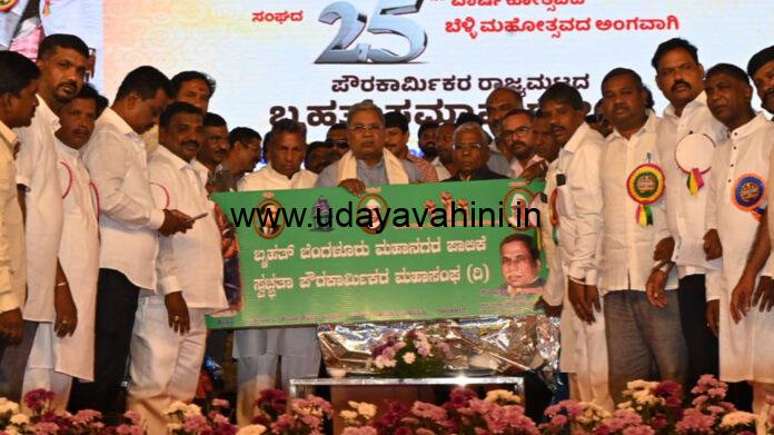 ತ್ಯಾಜ್ಯ ಸಾಗಾಣಿಕೆಯ ವಾಹನಗಳ ಚಾಲಕರು, ಸ್ವಚ್ಛಗಾರರನ್ನು ಗುತ್ತಿಗೆ ಬದಲಿಗೆ ನೇರ ವೇತನ ಪಾವತಿಗೆ ಒಳಪಡಿಸಲಾಗುವುದು. ಪೌರಕಾರ್ಮಿಕರಿಗೆ ನಗದುರಹಿತ ಚಿಕಿತ್ಸಾ ಸೌಲಭ್ಯದ ಹೆಲ್ತ್ಕಾರ್ಡ್ಗಳನ್ನು ವಿತರಿಸುವುದಾಗಿ ಹೇಳಿದರು.