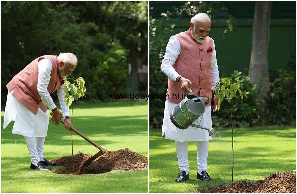 ಉದಯವಾಹಿನಿ, ನವದೆಹಲಿ: ಜೂನ್ 5, ವಿಶ್ವ ಪರಿಸರ ದಿನದಂದು, ಪ್ರಧಾನಿ ನರೇಂದ್ರ ಮೋದಿ ಅವರು ದೆಹಲಿಯಲ್ಲಿರುವ ತಮ್ಮ 7 ಲೋಕ ಕಲ್ಯಾಣ್ ಮಾರ್ಗ್ ನಿವಾಸದಲ್ಲಿ ಸಿಂದೂರ ಸಸಿಯನ್ನು ನೆಟ್ಟರು. 1971 ರ ಯುದ್ಧದ ಸಮಯದಲ್ಲಿ ಅಸಾಧಾರಣ ಧೈರ್ಯವನ್ನು ಪ್ರದರ್ಶಿಸಿದ ಮಹಿಳೆಯರ ಗುಂಪೊಂದು ಅವರಿಗೆ ಈ ಸಸಿಯನ್ನು ಉಡುಗೊರೆಯಾಗಿ ನೀಡಿದ್ದು ವಿಶೇಷವಾಗಿದೆ.