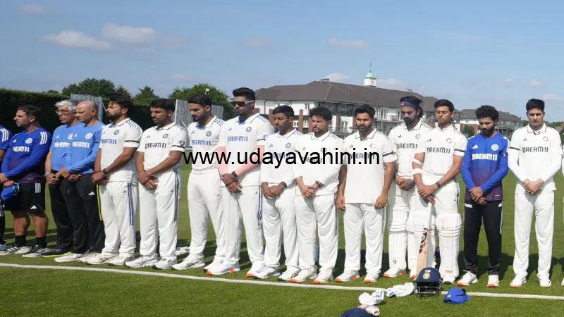 ಉದಯವಾಹಿನಿ, ಲಂಡನ್: ಬೆಕೆನ್ಹ್ಯಾಮ್ನಲ್ಲಿ ನಡೆಯುತ್ತಿರುವ ಇಂಟ್ರಾ-ಸ್ಕ್ವಾಡ್ ಪಂದ್ಯದಲ್ಲಿ ಭಾಗಿಯಾಗಿರುವ ಟೀಂ ಇಂಡಿಯಾ ಆಟಗಾರರು ಪಂದ್ಯದ ಆರಂಭಕ್ಕೂ ಮುನ್ನ ಕಪ್ಪು ಪಟ್ಟಿ ಧರಿಸಿ ಮೌನಾಚರಣೆ ಮಾಡಿ, ಅಹಮದಾಬಾದ್ ವಿಮಾನ ದುರಂತದಲ್ಲಿ ಸಾವನ್ನಪ್ಪಿದವರಿಗೆ ಸಂತಾಪ ಸೂಚಿಸಿದರು.