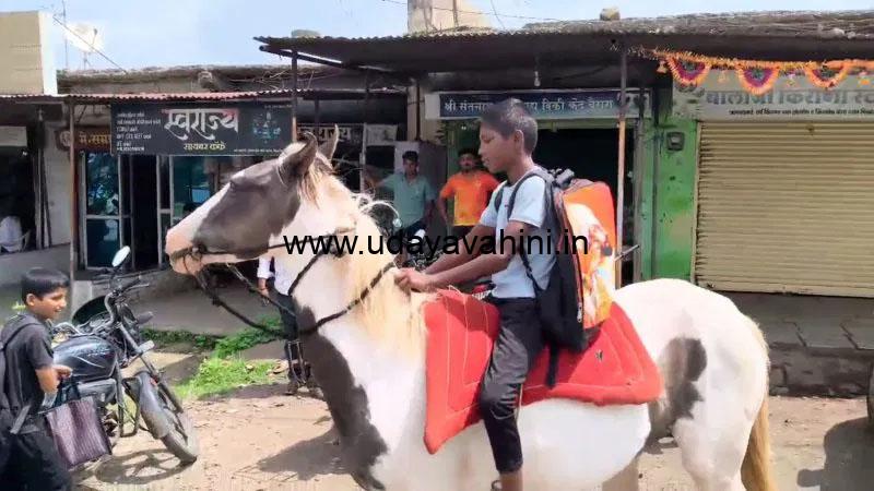 ಉದಯವಾಹಿನಿ, ಚಿಕ್ಕೋಡಿ: ಸರಿಯಾದ ಸಮಯಕ್ಕೆ ಬಸ್ ಬಾರದ ಕಾರಣ ಬಾಲಕನೊಬ್ಬ ಕುದುರೆ ಏರಿ ನಿತ್ಯ ಶಾಲೆಗೆ ತೆರಳುವ ಮೂಲಕ ಎಲ್ಲರ ಗಮನ ಸೆಳೆದಿರುವ ಘಟನೆ ಸೊಲ್ಹಾಪುರ ನಡೆದಿದೆ. ಮಹಾರಾಷ್ಟ್ರದ ಸೊಲ್ಹಾಪುರ ಜಿಲ್ಲೆ ಬಾರ್ಶಿ ತಾಲೂಕಿನ ವ್ಯರಾಗ್ ಪಟ್ಟಣದ ಹೊರವಲಯದ ಗ್ರಾಮೀಣ ಭಾಗದ 9 ವರ್ಷದ ಆದರ್ಶ ಸಾಳುಂಕ ಎಂಬ ಬಾಲಕ ಸರಿಯಾದ ಸಮಯಕ್ಕೆ ಬಾರದ ಬಸ್ಗೆ ಗೋಲಿ ಮಾರೋ ಎಂದು ಕುದುರೆ ಸವಾರಿ ಮಾಡಿಕೊಂಡು ಶಾಲೆಗೆ ಹೋಗುತ್ತಿದ್ದಾನೆ. ಬಾಲಕನ ಅಜ್ಜನ ಬಳಿ ಇರುವ 7 ಕುದುರೆಗಳ ಪೈಕಿ 1 ಕುದುರೆಯನ್ನು ಓಡಿಸಿಕೊಂಡು ಹೋಗಿ ಸರಿಯಾದ ಸಮಯಕ್ಕೆ ಶಾಲೆಗೆ ಹೋಗುವ ಮೂಲಕ ಗ್ರಾಮಸ್ಥರ ಗಮನ ಸೆಳೆದಿದ್ದಾನೆ.