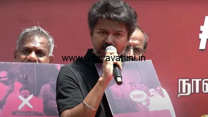 ಉದಯವಾಹಿನಿ, ಚೆನ್ನೈ: ಶಿವಗಂಗೈ ಜಿಲ್ಲೆಯಲ್ಲಿ ಪೊಲೀಸ್ ಕಸ್ಟಡಿಯಲ್ಲಿ ಸಾವನ್ನಪ್ಪಿದ್ದಾರೆ ಎನ್ನಲಾದ ಖಾಸಗಿ ಭದ್ರತಾ ಸಿಬ್ಬಂದಿ ಅಜಿತ್ ಕುಮಾರ್ ಸಾವಿಗೆ ನ್ಯಾಯ ದೊರಕಿಸಿಕೊಡುವಂತೆ ಒತ್ತಾಯಿಸಿ ತಮಿಳಗ ವೆಟ್ರಿ ಕಳಗಂ (ಟಿವಿಕೆ) ಮುಖ್ಯಸ್ಥ ಮತ್ತು ಖ್ಯಾತ ಚಿತ್ರನಟ ವಿಜಯ್ ಇಂದು ಚೆನ್ನೈನಲ್ಲಿ ಬೃಹತ್ ಪ್ರತಿಭಟನೆ ನಡೆಸಿದ್ದಾರೆ. ರಾಜಕೀಯ ಪಕ್ಷವನ್ನು ಪ್ರಾರಂಭಿಸಿದ ನಂತರ ವಿಜಯ್ ಅವರು ನಡೆಸುತ್ತಿರುವ ಮೊದಲ ಸಾರ್ವಜನಿಕ ಪ್ರತಿಭಟನೆ ಇದಾಗಿದೆ.ಮದಾಪುರಂ ದೇವಸ್ಥಾನದಲ್ಲಿ ದೇವಸ್ಥಾನದ ಕಾವಲುಗಾರರಾಗಿ ಕೆಲಸ ಮಾಡುತ್ತಿದ್ದ ಅಜಿತ್ ಕುಮಾರ್ ಕಳೆದ ತಿಂಗಳು ಪೊಲೀಸ್ ಕಸ್ಟಡಿಯಲ್ಲಿ ನಿಧನರಾಗಿದ್ದರು. ಸೆಷನ್್ಸ ನ್ಯಾಯಾಲಯದ ನ್ಯಾಯಾಧೀಶರ ವರದಿಯು ಅಕ್ರಮ ಕಸ್ಟಡಿ ಮತ್ತು ಚಿತ್ರಹಿಂಸೆಯನ್ನು ದೃಢಪಡಿಸಿದೆ ಮತ್ತು ಮದ್ರಾಸ್ ಹೈಕೋರ್ಟ್ನ ಮಧುರೈ ಪೀಠವು ಆಗಸ್ಟ್ 20 ರೊಳಗೆ ಅಂತಿಮ ವರದಿಯನ್ನು ಸಲ್ಲಿಸುವಂತೆ ಸಿಬಿಐಗೆ ಸೂಚಿಸಿದೆ.