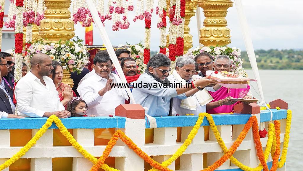 ಉದಯವಾಹಿನಿ, ಮಂಡ್ಯ: ಎಚ್.ಡಿ.ಕೋಟೆ ತಾಲ್ಲೂಕಿನ ಬೀಚನಹಳ್ಳಿಯ ಕಬಿನಿ ಜಲಾಶಯಕ್ಕೆ ಭಾನುವಾರ ಮುಖ್ಯಮಂತ್ರಿ ಸಿದ್ದರಾಮಯ್ಯ ಮತ್ತು ಉಪ ಮುಖ್ಯಮಂತ್ರಿ ಡಿ.ಕೆ.ಶಿವಕುಮಾರ್ ಬಾಗಿನ ಅರ್ಪಿಸಿದರು.ಮುಂಗಾರಿನಲ್ಲಿ ರಾಜ್ಯದಲ್ಲೇ ಮೊದಲು ತುಂಬುವ ಜಲಾಶಯ ಎಂಬ ಹೆಗ್ಗಳಿಕೆಗೆ ಪಾತ್ರವಾಗಿದ್ದು, ಕಳೆದ ಜೂನ್ ಮೊದಲ ವಾರದಲ್ಲೇ ತುಂಬಿತ್ತು. ಅಣೆಕಟ್ಟೆಯ ಗರಿಷ್ಠ ಮಟ್ಟ 2,284 ಅಡಿ ಇದ್ದು, ಇಂದಿನ ಮಟ್ಟ 2,283.33 ಅಡಿ ಇತ್ತು. 15 ಸಾವಿರ ಕ್ಯೂಸೆಕ್ ಒಳಹರಿವಿತ್ತು. ಅಣೆಕಟ್ಟೆಯ ಕಾವಲು ಗೋಪುರದ ಬಳಿ ಬೆಳಿಗ್ಗೆ 11.15ಕ್ಕೆ ಮುಖ್ಯಮಂತ್ರಿ ಸಿದ್ದರಾಮಯ್ಯ ಬಾಗಿನ ಅರ್ಪಿಸಿ, 32.25 ಕೋಟಿ ರು. ವೆಚ್ಚದ ಅಣೆಕಟ್ಟೆ ಪುನಶ್ಚೇತನ ಕಾಮಗಾರಿಗೆ ಶಿಲಾನ್ಯಾಸ ನೆರವೇರಿಸಿದರು.ಕಪಿಲಾ ನದಿಯು ಕಾವೇರಿಯ ಪ್ರಮುಖ ಉಪನದಿಯಾಗಿದ್ದು, 1.13 ಲಕ್ಷ ಹೆಕ್ಟೇರ್ ಭೂಮಿಗೆ ನೀರಾವರಿ ಒದಗಿಸುತ್ತದೆ. ಪ್ರತಿ ವರ್ಷದಂತೆ ಜಲಾಶಯ ತುಂಬಿದಾಗ ಬಾಗಿನ ಅರ್ಪಿಸಲಾಗಿದ್ದು, ರೈತರಿಗೆ ಒಳ್ಳೆಯದಾಗಲೆಂದು ಕಪಿಲಾ ಮಾತೆಗೆ ಪ್ರಾರ್ಥಿಸಲಾಗಿದೆ. ಜಲಾಶಯದ ಎದುರು ಬೃಂದಾವನ ಮಾದರಿಯಲ್ಲಿ ಅಭಿವೃದ್ಧಿ ಮಾಡಲಾಗುವುದು ಎಂದರು.ಮೇಕೆದಾಟು ಯೋಜನೆ ಅನುಷ್ಠಾನಕ್ಕೆ ರಾಜ್ಯ ಸರ್ಕಾರ ಬದ್ಧವಾಗಿದೆ. ಕೇಂದ್ರ ಸರ್ಕಾರ ಅನುಮತಿ ನೀಡಿದರೆ, ಸಮಾನಾಂತರ ಜಲಾಶಯ ನಿರ್ಮಿಸಲಾಗುವುದು. ಗೋವಾ ಹಾಗೂ ಕೇಂದ್ರದಲ್ಲಿ ಬಿಜೆಪಿಯವರದ್ದೇ ಸರ್ಕಾರವಿದೆ. ಮಹಾದಾಯಿ ಮತ್ತು ಮೇಕೆದಾಟು ಯೋಜನೆಗೆ ಅನುಮತಿ ಕೊಡಿಸಲಿ ಎಂದು ಪ್ರಶ್ನೆಯೊಂದಕ್ಕೆ ಉತ್ತರಿಸಿದರು.ಇಂದು ಮೈಸೂರಿನ ಹೆಗ್ಗಡದೇವನಕೋಟೆ ಬಳಿ ಕಾವೇರಿ ಮಾತೆಗೆ ಪೂಜೆ ಸಲ್ಲಿಸಿ, ಕಬಿನಿ ಜಲಾಶಯಕ್ಕೆ ಬಾಗಿನ ಅರ್ಪಿಸಿದೆ. ಪ್ರತಿ ಬಾರಿಯು ಸಮೃದ್ಧ ಮಳೆಯಾಗಿ ಕಾವೇರಿ ನದಿ ಮೈದುಂಬಿ ಹರಿಯಲಿ, ಜಲಾಶಯಗಳ ಒಡಲು ತುಂಬಿ ರೈತರು ಬಾಳ ಹಸನಾಗಲಿ ಎಂದು ಪ್ರಾರ್ಥಿಸಿದೆ.