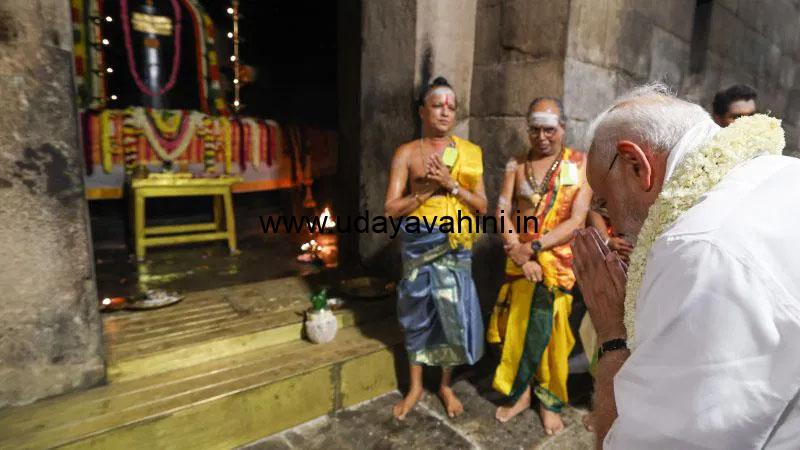 ಉದಯವಾಹಿನಿ, ಚೆನ್ನೈ: 11ನೇ ಶತಮಾನದ ತಮಿಳುನಾಡಿನ ಐತಿಹಾಸಿಕ ಗಂಗೈಕೊಂಡ ಚೋಳಪುರಂ ದೇವಾಲಯಕ್ಕೆ ಭಾನುವಾರ (ಜು.27) ಪ್ರಧಾನಿ ಮೋದಿ ಭೇಟಿ ನೀಡಿದರು.ತಮಿಳುನಾಡಿನ ಅರಿಯಲೂರ್ (ಜಿಲ್ಲೆಯ ಐತಿಹಾಸಿಕ ಗಂಗೈಕೊಂಡ ಚೋಳಪುರಂನಲ್ಲಿರುವ ಬೃಹದೀಶ್ವರ ದೇವಾಲಯಕ್ಕೆ ಭೇಟಿ ನೀಡಿದ ಅವರು, ಇಲ್ಲಿನ ಪ್ರಸಿದ್ಧ ಪಂಚೆ ಮತ್ತು ಅಂಗವಸ್ತ್ರದಲ್ಲಿ ಕಾಣಿಸಿಕೊಂಡರು. ಈ ಮೂಲಕ ಚೋಳ ರಾಜವಂಶದ ಪರಂಪರೆಗೆ ಗೌರವ ಸಲ್ಲಿಸಿದರು.ಬಳಿಕ ಜು.23ರಂದು ಪ್ರಾರಂಭವಾದ ಆದಿ ತಿರುಪತಿರೈ ಉತ್ಸವದ ಸಮಾರೋಪ ಸಮಾರಂಭದಲ್ಲಿ ಭಾಗಿಯಾದರು. ಈ ವೇಳೆ ಮೋದಿ ಸ್ವಾಗತಕ್ಕಾಗಿ ಶೈವ ಧರ್ಮಗ್ರಂಥಗಳಲ್ಲಿ ಪಾರಂಗತ ವಿದ್ವಾಂಸರಾದ ಶಿವಾಚಾರ್ಯರು ಮತ್ತು ಓತುವಮೂರ್ತಿಗಳು ಪವಿತ್ರ ಸ್ತುತಿಗೀತೆಗಳನ್ನು ಪಠಿಸಿದರು. ಇಳಯರಾಜ ಅವರು ತಿರುವಾಸಾಗಂ ಕುರಿತು ವಿಶೇಷ ಸಂಗೀತ ಪ್ರದರ್ಶಿಸಿದರು. ಸಮಾರಂಭದಲ್ಲಿ ತಮಿಳುನಾಡು ರಾಜ್ಯಪಾಲ ಆರ್.ಎನ್.ರವಿ, ಹಣಕಾಸು ಸಚಿವ ತಂಗಮ್ ತೇನರಸು, ಹಿಂದೂ ಧಾರ್ಮಿಕ ಮತ್ತು ಚಾರ್ಟಿಯಬಲ್ ದತ್ತಿ ಸಚಿವ ಪಿ.ಕೆ. ಶೇಖರ್ ಬಾಬು, ಸಾರಿಗೆ ಸಚಿವ ಎಸ್.ಎಸ್. ಶಿವಶಂಕರ್ ಮತ್ತು ಕೇಂದ್ರ ಸಚಿವ ಎಲ್. ಮುರುಗನ್ ಭಾಗವಹಿಸಿದ್ದರು.