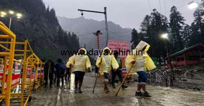 ಉದಯವಾಹಿನಿ, ಜಮ್ಮು: ಭಾರೀ ಮಳೆಯ ನಡುವೆಯೂ ಇಂದು 1600 ಕ್ಕೂ ಹೆಚ್ಚು ಯಾತ್ರಿಕರು ಜಮ್ಮುವಿನಿಂದ ದಕ್ಷಿಣ ಕಾಶ್ಮೀರ ಹಿಮಾಲಯದಲ್ಲಿರುವ ಅಮರನಾಥ ಗುಹೆ ದೇವಾಲಯದ ಅವಳಿ ಮೂಲ ಶಿಬಿರಗಳಿಗೆ ಬಿಗಿ ಭದ್ರತಾ ವ್ಯವಸ್ಥೆಗಳ ನಡುವೆ ಹೊರಟರು. ಜುಲೈ 3 ರಂದು ಕಣಿವೆಯಿಂದ ಪ್ರಾರಂಭವಾದ 3,880 ಮೀಟರ್ ಎತ್ತರದ ದೇವಾಲಯಕ್ಕೆ 38 ದಿನಗಳ ಯಾತ್ರೆಯಲ್ಲಿ 3.77 ಲಕ್ಷಕ್ಕೂ ಹೆಚ್ಚು ಯಾತ್ರಿಕರು ಶಿವನ ಹಿಮಲಿಂಗದ ದರ್ಶನ ಪಡೆದಿದ್ದಾರೆ.