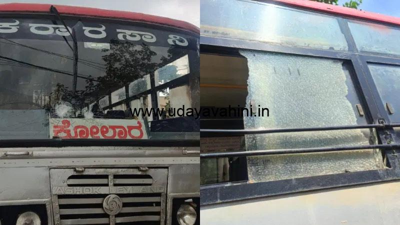 ಇನ್ನೊಂದೆಡೆ ಕೋಲಾರದಿಂದ ಹರಟಿ ಮಾರ್ಗವಾಗಿ ಸಂಚರಿಸಿದ್ದ ಬಸ್ ಕಿಡಿಗೇಡಿಗಳು ಕಲ್ಲು ಎಸೆದು ಪರಾರಿಯಾಗಿದ್ದಾರೆ. ಇನ್ನು ನಿಲ್ದಾಣದಲ್ಲಿ ನಿಂತಿದ್ದ ಬಸ್ಗಳಿಗೂ ಕಲ್ಲು ಎಸೆದಿದ್ದಾರೆ. ಕೆಲವು ಘಟನಾ ಸ್ಥಳಕ್ಕೆ ಕೋಲಾರ ನಗರ ಪೊಲೀಸರು ಹಾಗೂ ವಿಭಾಗೀಯ ನಿಯಂತ್ರಣಾಧಿಕಾರಿ ಶ್ರೀನಾಥ್, ಕೋಲಾರದ ಎಸ್ಪಿ ನಿಖಿಲ್.ಬಿ ಭೇಟಿ ನೀಡಿ, ಪರಿಶೀಲಿಸಿದ್ದಾರೆ. ಇದೀಗ ಬಸ್ ನಿಲ್ದಾಣದಲ್ಲಿ ಬಿಗಿ ಬಂದೋಬಸ್ತ್ ಮಾಡಲಾಗಿದೆ.
