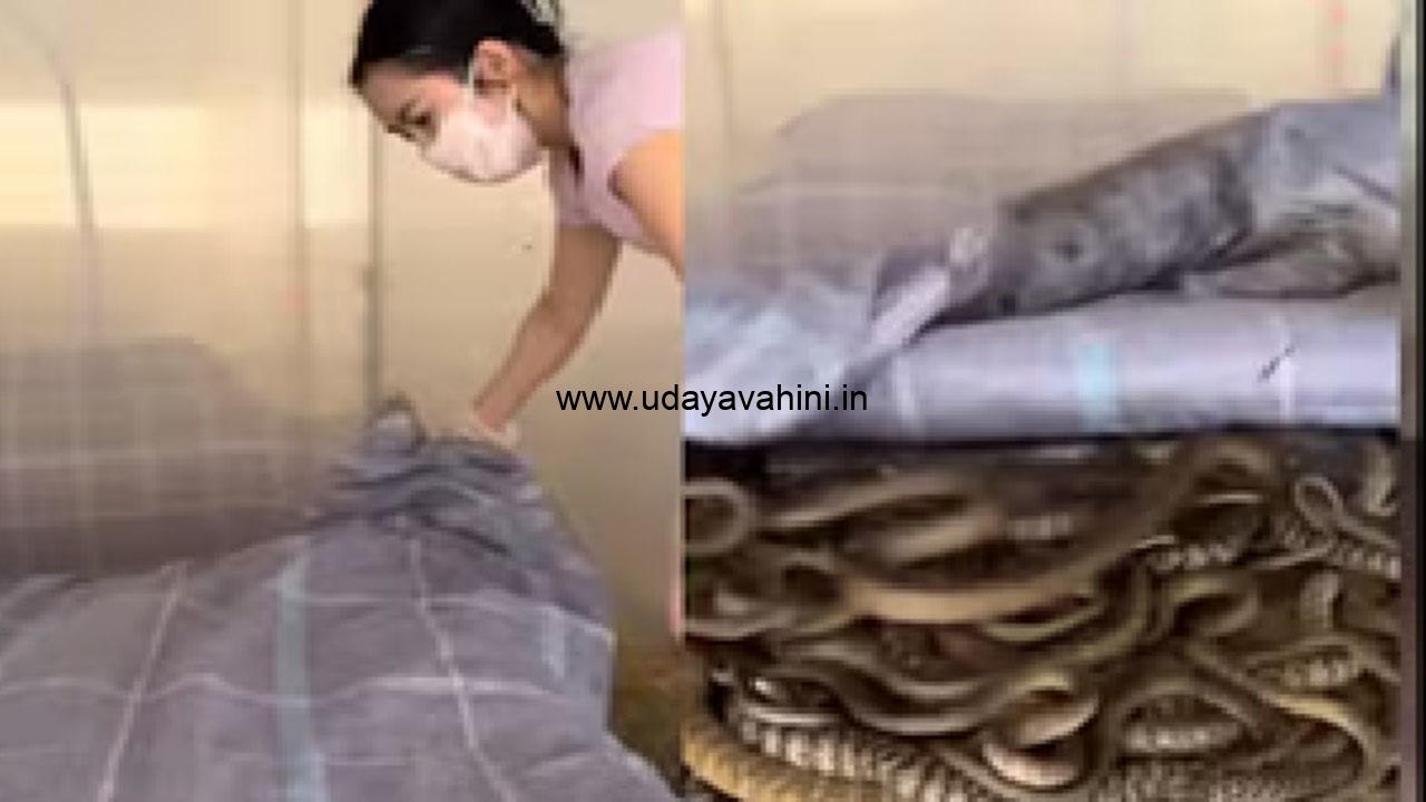 ಸದ್ಯ ವೈರಲ್ ಆಗಿರುವ ವಿಡಿಯೊದಲ್ಲಿ, ಯುವತಿ ಹೊದಿಕೆಯನ್ನು ಮೇಲೆತ್ತುವುದನ್ನು ನೋಡಬಹುದು. ಅದರ ಕೆಳಗೆ ಡಜನ್ಗಟ್ಟಲೆ ಹಾವುಗಳು ತೆವಳುತ್ತಿವೆ. ಈ ಆತಂಕಕಾರಿ ದೃಶ್ಯವು ವೀಕ್ಷಕರನ್ನು ಭಯಭೀತಗೊಳಿಸಿದೆ ಮತ್ತು ಕುತೂಹಲ ಕೆರಳಿಸಿದೆ. ಅಂದಹಾಗೆ, ಆ ಯುವತಿ ತನ್ನ ಮಲಗುವ ಕೋಣೆಗೆ ಯಾರನ್ನೂ ಒಳಗೆ ಬಿಡದೆ ಯಾವಾಗಲೂ ಬೀಗ ಹಾಕಿಕೊಂಡಿದ್ದಳು ಎಂದು ತಿಳಿದುಬಂದಿದೆ. ನಿರಂತರವಾಗಿ ದಪ್ಪ ಹೊದಿಕೆಯಿಂದ ಮುಚ್ಚಲ್ಪಟ್ಟಿದ್ದ ಹಾಸಿಗೆ ಹಾವುಗಳಿಗೆ ರಹಸ್ಯ ಆಶ್ರಯವಾಯಿತು. ಕೊನೆಗೂ ಕೋಣೆಯನ್ನು ತೆರೆದು ಹೊದಿಕೆಯನ್ನು ತೆಗೆದಾಗ, ನೋಡುಗರು ಹಾವುಗಳ ರಾಶಿಯನ್ನು ನೋಡಿ ದಿಗ್ಭ್ರಮೆಗೊಂಡಿದ್ದಾರೆ. ಯುವತಿ ತನ್ನ ಮಲಗುವ ಕೋಣೆಯನ್ನು ಹಾವು ಸಾಕಣೆಗೆ ಬೆಚ್ಚಗಿನ ಸ್ವರ್ಗವನ್ನಾಗಿ ಪರಿವರ್ತಿಸಿದ್ದಳು. ಈ ಪದ್ಧತಿ ಚೀನಾದ ಕೆಲವು ಭಾಗಗಳಲ್ಲಿ ಜನಪ್ರಿಯತೆ ಗಳಿಸುತ್ತಿದೆ. ಹೊದಿಕೆಯ ಕೆಳಗೆ ಸಿಲುಕಿದ ಶಾಖದಲ್ಲಿ ಹಾವುಗಳು ಅಭಿವೃದ್ಧಿ ಹೊಂದುತ್ತಿದ್ದವು. ಇತರರಿಗೆ ಈ ದೃಶ್ಯವು ಮೈಚಳಿ ಬಿಟ್ಟಂತಾದರೂ, ಆ ಯುವತಿಗೆ ಅದು ಸಾಮಾನ್ಯ ದಿನಚರಿಯಾಗಿತ್ತು. ಹಾವುಗಳನ್ನು ಸಾಕುವುದು ಆಕೆಯ ದೈನಂದಿನ ಜೀವನದ ಒಂದು ಭಾಗವಾಗಿತ್ತು.