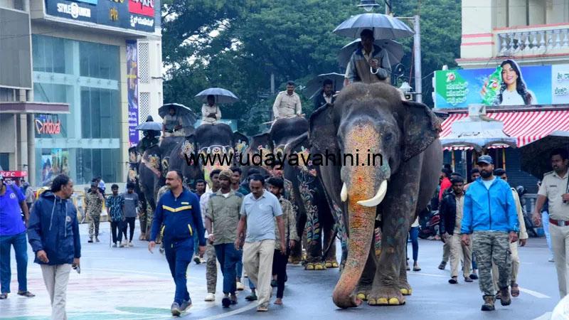 ನಗರದ ಧನ್ವಂತ್ರಿ ರಸ್ತೆಯಲ್ಲಿರುವ ಸಾಯಿರಾಮ್ ತೂಕ ಮಾಪನ ಕೇಂದ್ರದಲ್ಲಿ ಆನೆಗಳ ತೂಕ ಪರಿಶೀಲನೆ ಮಾಡಿ, ಬಳಿಕ ಮೆರವಣಿಗೆ ನಡೆಸಲಾಯಿತು. ಸತತ ಒಂದು ತಿಂಗಳ ಆನೆಗಳಿಗೆ ನಿತ್ಯ ತರಬೇತಿ ನೀಡಲಾಗುತ್ತದೆ. ಬೆಳಗ್ಗೆ ಸಂಜೆ ಎರಡು ಸಮಯ ಅರಮನೆಯಿಂದ ಬನ್ನಿಮಂಟಪದವರೆಗೆ (Bannimantap) ತಾಲೀಮು ನಡೆಸಲಾಗುತ್ತೆ. ಇದರೊಂದಿಗೆ ಪಟಾಕಿ, ಕುಶಾಲತೋಪು ಸಿಡಿಸುವ ತಾಲೀಮು, ಮರದ ಅಂಬಾರಿ ಮೆರವಣಿಗೆ ತಾಲೀಮು ಸಹ ನಡೆಯಲಿವೆ. ಸದ್ದುಗದ್ದಲದಿಂದ ವಿಚಲಿತವಾಗದಂತೆ ನೋಡಿಕೊಳ್ಳಲು ಆನೆಗಳಿಗೆ ರೀತಿಯ ತರಬೇತಿ ನೀಡಲಾಗುತ್ತೆ.