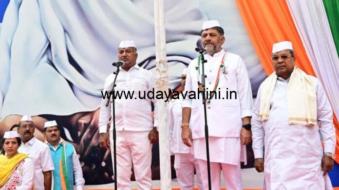 ನೆಹರೂ 3262 ದಿನ ಜೈಲಿನಲ್ಲಿದ್ದರು. ಅವರಂತೆ ದೇಶದ ಸ್ವಾತಂತ್ರ್ಯಕ್ಕಾಗಿ ತನು, ಮನ, ಧನ ಅರ್ಪಿಸಿದ ನೂರಾರು ನಾಯಕರು ಇದ್ದಾರೆ. ರಾಷ್ಟ್ರಗೀತೆ, ರಾಷ್ಟ್ರ ಧ್ವಜವನ್ನು ದೇಶಕ್ಕೆ ನೀಡಿದ್ದು ಕಾಂಗ್ರೆಸ್ ಪಕ್ಷ. ಆದರೆ ಕಾಂಗ್ರೆಸ್ನ ಕೊಡುಗೆಗಳ ಬಗ್ಗೆಯೇ ಇಂದು ಮರೆಮಾಚಲಾಗುತ್ತಿದೆ. ಯುವಪೀಳಿಗೆಯಿಂದ ಸತ್ಯಾಂಶವನ್ನು ಮರೆಮಾಚಲಾಗುತ್ತಿದೆ. ಇದರ ಬಗ್ಗೆ ನಾವು ಎಚ್ಚೆತ್ತುಕೊಳ್ಳಬೇಕಿದೆ ಎಂದರು. 79ನೇ ಸ್ವಾತಂತ್ರ್ಯ ದಿನಾಚರಣೆ ಸಂದರ್ಭದಲ್ಲಿ ಕಾಂಗ್ರೆಸ್ನ ಕಾರ್ಯಕರ್ತರು 5 ಶಪಥಗಳನ್ನು ಮಾಡಬೇಕು. ಪ್ರಜಾಪ್ರಭುತ್ವವನ್ನು ಉಳಿಸುತ್ತೇನೆ. ಸಂವಿಧಾನ ರಕ್ಷಿಸುತ್ತೇನೆ, ಚುನಾವಣೆ ಅಕ್ರಮ ಹಾಗೂ ಮತಗಳ್ಳತನ ತಡೆಯುತ್ತೇನೆ, ತೆರಿಗೆ ಅಸಮಾನತೆಯ ವಿರುದ್ಧ ಹೋರಾಟ ಮಾಡುತ್ತೇನೆ, ದೇಶದಲ್ಲಿ ಸರ್ವಾಧಿಕಾರವನ್ನು ತೊಲಗಿಸಿ ಜನಪರ ಸರ್ಕಾರವನ್ನು ಅಧಿಕಾರಕ್ಕೆ ತರುತ್ತೇನೆ ಎಂಬ ಪ್ರಮಾಣಗಳನ್ನು ಕಾರ್ಯಕರ್ತರು ಕೈಗೊಳ್ಳಬೇಕೆಂದು ಹೇಳಿದರು.