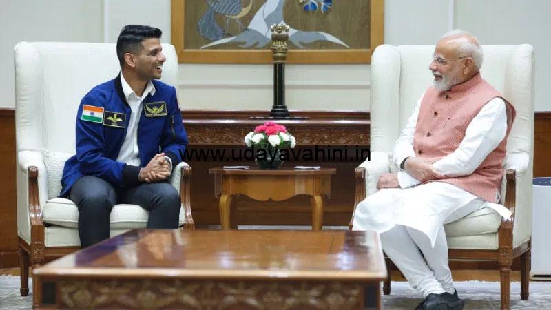 ಉದಯವಾಹಿನಿ, ನವದೆಹಲಿ: ಅಂತಾರಾಷ್ಟ್ರೀಯ ಬಾಹ್ಯಾಕಾಶ ನಿಲ್ದಾಣಕ್ಕೆ ಪ್ರಯಾಣಿಸಿ ಮರಳಿದ್ದ ಭಾರತೀಯ ವಾಯುಪಡೆಯ ಪೈಲಟ್, ಗಗನಯಾತ್ರಿ ಶುಭಾಂಶು ಶುಕ್ಲಾ ಇವತ್ತು ಪ್ರಧಾನಿ ಮೋದಿಯವರನ್ನು ಭೇಟಿಯಾಗಿದ್ದಾರೆ.ಪ್ರಧಾನಿ ನಿವಾಸದಲ್ಲಿ ಮೋದಿಯವರು ಶುಭಾಂಶು ಶುಕ್ಲಾರನ್ನು ಆಲಿಂಗಿಸಿ ಬರಮಾಡಿಕೊಂಡರು. ಈ ವೇಳೆ ಶುಕ್ಲಾ ಮೋದಿಯವರಿಗೆ ತಾವು ಬಾಹ್ಯಾಕಾಶಕ್ಕೆ ಕೊಂಡೊಯ್ದಿದ್ದ ತ್ರಿವರ್ಣ ಧ್ವಜವನ್ನು ಉಡುಗೊರೆಯಾಗಿ ನೀಡಿದರು. ಜೊತೆಗೆ ತಮ್ಮ ಬಾಹ್ಯಾಕಾಶ ಯಾನದ ಬಗ್ಗೆ ಅನುಭವ ಹಂಚಿಕೊಂಡಿದ್ದಾರೆ. ಮೋದಿ, ಶುಕ್ಲಾ ಅವರ ಸಾಧನೆಗಳನ್ನು ಮಾತ್ರವಲ್ಲದೇ, ಭೂಮಿಯಾಚೆಗೆ ಕನಸು ಕಾಣಲು ಯುವಪೀಳಿಗೆಯನ್ನು ಪ್ರೇರೇಪಿಸಿದ್ದಕ್ಕಾಗಿ ಶ್ಲಾಘಿಸಿದರು.