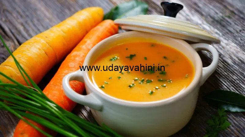 ಉದಯವಾಹಿನಿ, ಈಗಂತೂ ಒಂದಿನ ಮಳೆ, ಒಂದಿನ ಬಿಸಿಲು ಹೀಗೆ ಹವಾಮಾನ ಬದಲಾವಣೆ ಆಗುತ್ತಲೇ ಇರುತ್ತದೆ. ಮಳೆ ಬರುವ ವೇಳೆ ಬಿಸಿ ಬಿಸಿಯಾಗಿ ಏನಾದರೂ ಕುಡಿಯಬೇಕು, ತಿನ್ನಬೇಕು ಎಂದೆನಿಸುವುದು ಸಹಜ. ಚಳಿಗೆ ಬೆಚ್ಚಗಿನ ಬಿಸಿ ಬಿಸಿ ಸೂಪ್ಗಿಂತ ಉತ್ತಮವಾದ ಆಯ್ಕೆ ಮತ್ತೊಂದಿಲ್ಲ. ಇವತ್ತಿನ ನಮ್ಮ ರೆಸಿಪಿಯಲ್ಲಿ ಕ್ಯಾರೆಟ್ ಶುಂಠಿ ಸೂಪ್ ಯಾವ ರೀತಿ ಮಾಡುವುದು ಎಂಬುದನ್ನು ತಿಳಿಸಿಕೊಡುತ್ತೇವೆ. ಅಡುಗೆ ಮನೆಯಲ್ಲಿರುವ ಕೆಲವು ಸಾಮಗ್ರಿಗಳನ್ನು ಬಳಸಿ ಈ ಸೂಪ್ ತಯಾರಿಸಬಹುದು. ಅಲ್ಲದೇ ಶೀತ, ಕೆಮ್ಮಿಗೂ ಈ ಸೂಪ್ ರಾಮಬಾಣ. ಹಾಗಿದ್ರೆ ಇದನ್ನು ಯಾವ ರೀತಿ ಮಾಡುವುದು ಎಂಬುದನ್ನು ತಿಳಿದುಕೊಳ್ಳಿ.