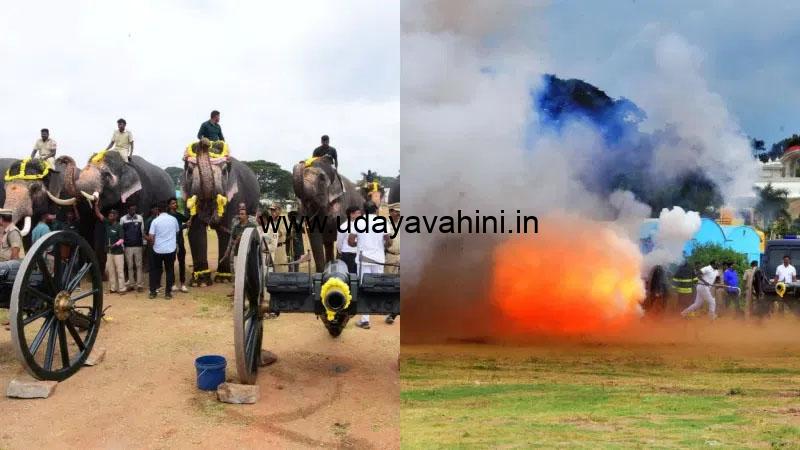 ಸಿಡಿಮದ್ದು ತಾಲೀಮು ವೇಳೆ ಸಶಸ್ತ್ರ ಮೀಸಲು ಪಡೆ ಪೊಲೀಸರು 21 ಭಾರಿ ಕುಶಾಲತೋಪು ಸಿಡಿಸಿದರು. ಸಿಡಿಮದ್ದಿನ ಶಬ್ದಕ್ಕೆ ಕುದುರೆಗಳು ಚದುರಿದವು ಹಾಗೂ ಶ್ರೀಕಂಠ, ಹೇಮಾವತಿ ಆನೆಗಳು ಸ್ವಲ್ಪ ವಿಚಲಿತಗೊಂಡವು.