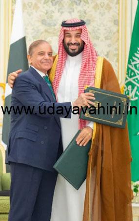 ಉದಯವಾಹಿನಿ, ರಿಯಾದ್: ಪಾಕಿಸ್ತಾನ ಪ್ರಧಾನಿ ಶೆಹಬಾಜ್ ಷರೀಫ್ ಅವರ ರಿಯಾದ್ ಭೇಟಿಯ ಸಂದರ್ಭದಲ್ಲಿ ಸೌದಿ ಅರೇಬಿಯಾ ಮತ್ತು ಪಾಕಿಸ್ತಾನ ಪರಸ್ಪರ ರಕ್ಷಣಾ ಒಪ್ಪಂದಕ್ಕೆ ಸಹಿ ಹಾಕಿವೆ. ‘ಇಬ್ಬರಲ್ಲಿ ಯಾರ ಮೇಲೆಯೇ ಯುದ್ಧ ನಡೆಯಲಿ, ಎರಡೂ ದೇಶಗಳ ವಿರುದ್ಧ ಆಕ್ರಮಣ ಎಂದು ಪರಿಗಣಿಸುವುದು’ ಒಪ್ಪಂದದ ಪ್ರಮುಖ ಷರತ್ತಾಗಿದೆ.