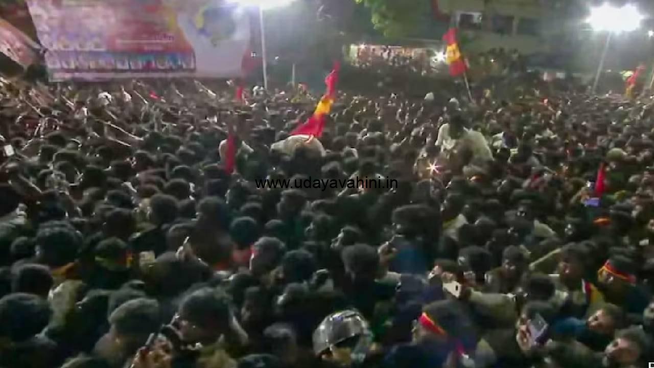 ಉದಯವಾಹಿನಿ, ಚೆನ್ನೈ: ತಮಿಳುನಾಡಿನ ಕರೂರಿನಲ್ಲಿ ನಟ-ರಾಜಕಾರಣಿ ಮತ್ತು ಟಿವಿಕೆ ಮುಖ್ಯಸ್ಥ ವಿಜಯ್ ಅವರ ರ್ಯಾಲಿಯಲ್ಲಿ ನಡೆದ ಕಾಲ್ತುಳಿತದಲ್ಲಿ 39 ಜನರು ಸಾವನ್ನಪ್ಪಿ ಸುಮಾರು 100 ಜನರು ಗಾಯಗೊಂಡ ಘಟನೆ ನಡೆದಿದೆ. ಶನಿವಾರ ಸಂಜೆ ವಿಜಯ್ ಅವರನ್ನು ನೋಡಲು ಸಾವಿರಾರು ಜನ ಸೇರಿದ್ದರು. ವಿಜಯ್ ಸಂಜೆ 7 ಗಂಟೆಯ ಸುಮಾರಿಗೆ ಆಗಮಿಸುವವರೆಗೂ ಜನಸಂದಣಿ ಹೆಚ್ಚಾಗಿತ್ತು. ಕಾಲ್ತುಳಿದ ಕುರಿತು ಪ್ರತ್ಯಕ್ಷದರ್ಶಿಗಳು ಮಾತನಾಡಿದ್ದಾರೆ. ಕಾಲ್ತುಳಿತದಲ್ಲಿ ಅನೇಕ ಜನರು ಮರಗಳು, ಛಾವಣಿಗಳು ಮತ್ತು ವಿದ್ಯುತ್ ತಂತಿಗಳ ಮೇಲೆ ಹತ್ತಿದರು, ಇದರಿಂದಾಗಿ ವಿದ್ಯುತ್ ಆಘಾತದ ಪ್ರಕರಣಗಳನ್ನು ತಪ್ಪಿಸಲು ಅಧಿಕಾರಿಗಳು ವಿದ್ಯುತ್ ತಂತಿಗಳನ್ನು ಕತ್ತರಿಸಬೇಕಾಯಿತು.