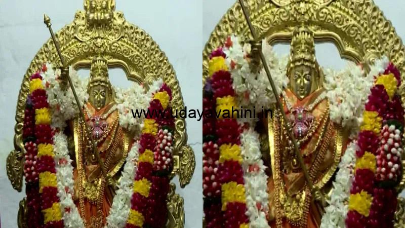 ಉದಯವಾಹಿನಿ, ಮೈಸೂರು: ಸಾಂಸ್ಕೃತಿಕ ನಗರಿ ಮೈಸೂರಿನಲ್ಲಿ ದಸರಾ ವೈಭವ ಜೋರಾಗಿದ್ದು, ಚಿನ್ನದ ಅಂಬಾರಿಯಲ್ಲಿ ಸಾಗುವ ತಾಯಿ ಚಾಮುಂಡೇಶ್ವರಿ ಕೇಸರಿ ಬಣ್ಣದ ಸೀರೆಯಲ್ಲಿ ಕಂಗೊಳಿಸುತ್ತಿದ್ದಾಳೆ.ಚಿನ್ನದ ಅಂಬಾರಿಯಲ್ಲಿ ಸಾಗಲಿರುವ ಚಾಮುಂಡೇಶ್ವರಿ ಉತ್ಸವಮೂರ್ತಿಗೆ ಅಲಂಕಾರ ಮಾಡಿ, ಪೂಜೆ ಮಾಡಲಾಗಿದೆ. ಬಳಿಕ ಉತ್ಸವ ಮೂರ್ತಿ ಚಾಮುಂಡಿ ಬೆಟ್ಟದಿಂದ ಅರಮನೆಯತ್ತ ತೆರೆದ ವಾಹನದಲ್ಲಿ ಮೆರವೆಣಿಗೆ ಸಾಗಲಿದೆ. ನಾಡದೇವಿ ಬೆಳ್ಳಿ ಪ್ರಭಾವಳಿಯಲ್ಲಿ ವಿರಾಜಮಾನಳಾಗಿ ಕಾಣಿಸಿಕೊಂಡಿದ್ದಾಳೆ.