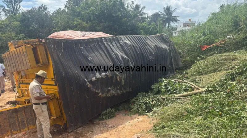 ಉದಯವಾಹಿನಿ , ಆನೇಕಲ್: ಕಂಟೈನರ್ ಲಾರಿಯೊಂದು ಕಂದಕಕ್ಕೆ ಉರುಳಿ ಬಿದ್ದ ಪರಿಣಾಮ ಸ್ಥಳದಲ್ಲೇ ಇಬ್ಬರು ಸಾವನ್ನಪ್ಪಿದ್ದು, ನಾಲ್ವರು ಗಂಭೀರ ಗಾಯಗೊಂಡಿರುವ ಘಟನೆ ಬೆಂಗಳೂರು ಹೊರವಲಯದ ಆನೇಕಲ್ ತಾಲೂಕಿನ ಉರಗನದೊಡ್ಡಿ ಬಳಿ ನಡೆದಿದೆ. ಬೆಳಗ್ಗೆ 11 ಗಂಟೆಯ ಸುಮಾರಿಗೆ ಅವಘಡ ಸಂಭವಿಸಿದೆ. ರಸ್ತೆಯ ಕೇಬಲ್ ಡ್ರಿಲ್ಲಿಂಗ್ ಮಿಷನ್ ತುಂಬಿದ್ದ ಕಂಟೈನರ್ ಇಳಿಜಾರಿನ ತಿರುವಿನಲ್ಲಿ ಅತಿವೇಗವಾಗಿ ಬಂದ ಪರಿಣಾಮ ಚಾಲಕನ ನಿಯಂತ್ರಣ ತಪ್ಪಿ ಕಂದಕಕ್ಕೆ ಉರುಳಿದೆ. ಘಟನೆಯ ಪರಿಣಾಮ ಇಬ್ಬರು ಕಾರ್ಮಿಕರು ಕಂಟೈನರ್ ಕೆಳಗೆ ಸಿಲುಕಿ ಮೃತಪಟ್ಟಿದ್ದಾರೆ. ಉಳಿದ ನಾಲ್ವರಿಗೆ ಗಂಭೀರ ಗಾಯಗಳಾಗಿದ್ದು, ಓರ್ವನ ಸ್ಥಿತಿ ಚಿಂತಾಜನಕವಾಗಿದೆ. ಸದ್ಯ ಗಾಯಾಳುಗಳಿಗೆ ಜಿಗಣಿಯ ವಿಜಯಶ್ರೀ ಆಸ್ಪತ್ರೆಯಲ್ಲಿ ಚಿಕಿತ್ಸೆ ನೀಡಲಾಗುತ್ತಿದೆ.