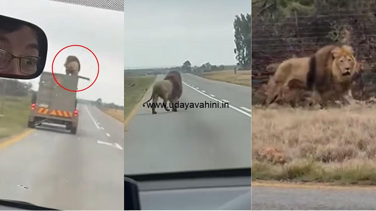 ಉದಯವಾಹಿನಿ , ಕೇಪ್ಟೌನ್: ಚಲಿಸುತ್ತಿರುವ ವಾಹನದ ಮೇಲಿಂದ ಸಿಂಹವೊಂದು ಕೆಳಕ್ಕೆ ಜಿಗಿದಿರುವ ಘಟನೆ ದಕ್ಷಿಣ ಆಫ್ರಿಕಾದ ವಾಯುವ್ಯ ಪ್ರದೇಶದಲ್ಲಿ ನಡೆದಿದ್ದು, ಇದರ ವಿಡಿಯೊ ಸಾಮಾಜಿಕ ಮಾಧ್ಯಮದಲ್ಲಿ ವೈರಲ್ ಆಗಿದೆ. ಈ ವಿಡಿಯೊ ವೈರಲ್ ಆದ ಬೆನ್ನಲ್ಲೇ ಪ್ರಾಣಿ ಸಂರಕ್ಷಣಾ ಸಂಸ್ಥೆಗಳು ಅಧಿಕಾರಿಗಳನ್ನು ಪ್ರಶ್ನಿಸುತ್ತಿವೆ. ಕಾಡು ಪ್ರಾಣಿಗಳ ಸ್ಥಳಾಂತರದ ಸಮಯದಲ್ಲಿ ಅವುಗಳ ಸುರಕ್ಷತೆ ಮತ್ತು ಭದ್ರತೆಯ ಬಗ್ಗೆ ಸಂಸ್ಥೆಯು ಕಳವಳ ವ್ಯಕ್ತಪಡಿಸಿವೆ.ಫ್ರೀ ಸ್ಟೇಟ್ನಿಂದ ಗಂಡು ಸಿಂಹವನ್ನು ವಾಯುವ್ಯದ ರಾಮೋತ್ಶೆರೆ ಮೊಯಿಲೋವಾ ಪ್ರದೇಶದ ನೀಟ್ವರ್ಡಿಯಂಡ್ನಲ್ಲಿರುವ ಬೇಟೆ ಫಾರ್ಮ್ಗೆ ತರಲಾಯಿತು. ಅದು ನೆಲಕ್ಕೆ ಹಾರುವ ಸ್ವಲ್ಪ ಸಮಯದ ಮೊದಲು ಚಲಿಸುತ್ತಿರುವ ವ್ಯಾನ್ನಲ್ಲಿ ನಿಂತಿರುವುದನ್ನು ಕ್ಯಾಮರಾದಲ್ಲಿ ಸೆರೆಹಿಡಿಯಲಾಗಿದೆ. ನೋಡ ನೋಡುತ್ತಿದ್ದಂತೆ ಸಿಂಹವು ರಸ್ತೆಗೆ ಜಿಗಿದಿದೆ.