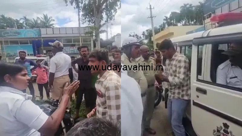 ತುಮಕೂರಿನ ರಿಂಗ್ ರಸ್ತೆಯಲ್ಲಿ ಹರ್ಷ ಎಂಬ ಯುವಕ ಬೆಂಗಳೂರಿಂದ ಅರಸಿಕೆರೆಗೆ ಬೈಕಲ್ಲಿ ಹೋಗುತಿದ್ದ. ಯುವಕನ ಬೈಕ್ಗೆ ಎರಡೂ ಮಿರರ್ ಇರಲಿಲ್ಲ. ಹೀಗಾಗಿ ರಿಂಗ್ ರಸ್ತೆಯಲ್ಲಿ ನಗರ ಪೂರ್ವ ಸಂಚಾರಿ ಮಹಿಳಾ ಪಿಎಸ್ಐ ಸ್ಪಾಟ್ ಫೈನ್ ಹಾಕಿದ್ದಾರೆ. ಆದರೆ ಯುವಕ ತನ್ನ ಬಳಿ ಹಣ ಇಲ್ಲ, ರಶೀದಿ ಕೊಡಿ ಕೋರ್ಟ್ನಲ್ಲಿ ಕಟ್ಟುತ್ತೇನೆ ಎಂದು ಪೊಲೀಸರಿಗೆ ಮನವಿ ಮಾಡಿದ್ದಾನೆ. ಒಪ್ಪದ ಪೊಲೀಸರು ಸ್ಥಳದಲ್ಲೇ ದಂಡ ಕಟ್ಟಬೇಕು ಎಂದು ತಾಕೀತು ಮಾಡಿದ್ದಾರೆ. ಇದರಿಂದ ಪೊಲೀಸರು ಮತ್ತು ಸವಾರನ ನಡುವೆ ವಾಗ್ವಾದ ನಡೆದಿದೆ. ಪೊಲೀಸರು ದೌರ್ಜನ್ಯ ಮಾಡಿದ್ದಾರೆ ಅಂತ ಯುವಕ ಸ್ಥಳದಲ್ಲೇ ರಸ್ತೆ ತಡೆದು ಪ್ರತಿಭಟನೆ ಮಾಡಿದ್ದಾನೆ. ಇದರಿಂದಾಗಿ ಸುಮಾರು ಅರ್ಧ ಕಿ.ಮೀ ದೂರದಷ್ಟು ಟ್ರಾಫಿಕ್ ಜಾಮ್ ಉಂಟಾಗಿತ್ತು. ಸಾರ್ವಜನಿಕರಿಗೆ ತೊಂದರೆ ಆದ ಹಿನ್ನೆಲೆ ಜಯನಗರ ಪೊಲೀಸರು ಹರ್ಷನನ್ನು ವಶಕ್ಕೆ ಪಡೆದಿದ್ದಾರೆ. ಪೊಲೀಸರ ಕರ್ತವ್ಯಕ್ಕೆ ಅಡ್ಡಿ ಹಾಗೂ ಸಾರ್ವಜನಿಕರಿಗೆ ತೊಂದರೆ ಹಿನ್ನೆಲೆ ಎಫ್ಐಆರ್ ದಾಖಲಿಸಿದ್ದಾರೆ.