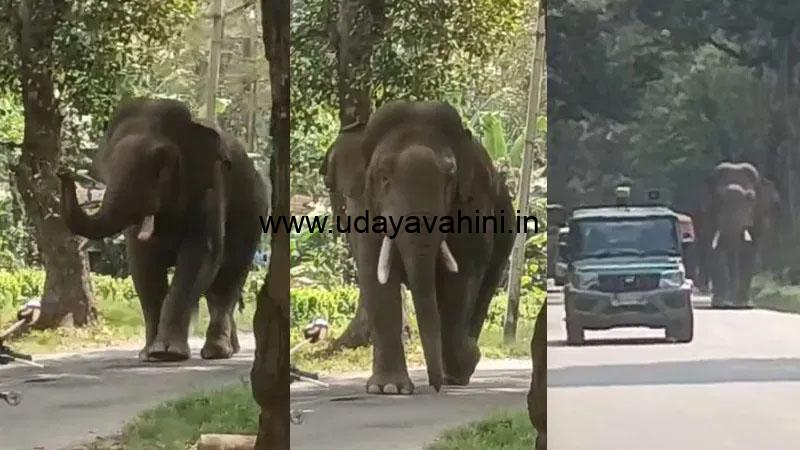 ಉದಯವಾಹಿನಿ, ಹಾಸನ: ಬೇಲೂರು ತಾಲೂಕಿನ ಬಿಕ್ಕೋಡು ಗ್ರಾಮದಲ್ಲಿ ಒಂಟಿ ಸಲಗವೊಂದು ವಾಹನಗಳ ನಡುವೆ ಹಾಗೂ ಜನರ ಸಮೀಪದಲ್ಲೇ ಯಾರಿಗೂ ತೊಂದರೆ ಕೊಡದೆ ಸಾಕಾನೆಯಂತೆ ಓಡಾಡಿದೆ. ಗ್ರಾಮದೊಳಗೆ ಎಂಟ್ರಿ ಕೊಟ್ಟ ಭೀಮನನ್ನು ಇಟಿಎಫ್ ಸಿಬ್ಬಂದಿ ಮೈಕ್ನಲ್ಲಿ ಅನೌನ್ಸ್ ಮಾಡುತ್ತ ಎಸ್ಕಾರ್ಟ್ ಮಾಡಿದ್ದಾರೆ. ಈ ವೇಳೆ ಕಾಡಾನೆ ಸಾಕಾನೆಯಂತೆಯೇ ಯಾವುದೇ ಗೊಂದಲಕ್ಕೊಳಗಾಗದೇ ಹೆಜ್ಜೆ ಹಾಕಿದೆ. ಸುತ್ತಮುತ್ತ ಜನರು ಇರುವುದನ್ನು ಕಂಡು, ಸೊಂಡಿಲಿನಲ್ಲಿ ತನ್ನದೇ ಶೈಲಿಯಲ್ಲಿ ಸನ್ನೆ ಮಾಡಿ ಪೋಸ್ ಕೊಡುತ್ತಾ, ಜನರತ್ತ ನೋಡಿ ಕಾಡಿನ ಕಡೆ ಹೆಜ್ಜೆ ಹಾಕಿದೆ. ಇಟಿಎಫ್ ಸಿಬ್ಬಂದಿ ಎಸ್ಕಾರ್ಟ್ ಮಾಡುವ ವಿಡಿಯೋ ಕ್ಯಾಮೆರಾದಲ್ಲಿ ಸೆರೆಯಾಗಿದೆ. ಜನರನ್ನು ಕಂಡು ಸೊಂಡಲು ಎತ್ತಿ ಸಾಗುತ್ತಿರುವುದು ಸಹ ಕ್ಯಾಮೆರಾದಲ್ಲಿ ಸೆರೆಯಾಗಿದ್ದು, ಸಾಮಾಜಿಕ ಜಾಲತಾಣದಲ್ಲಿ ವೈರಲ್ ಆಗಿದೆ.