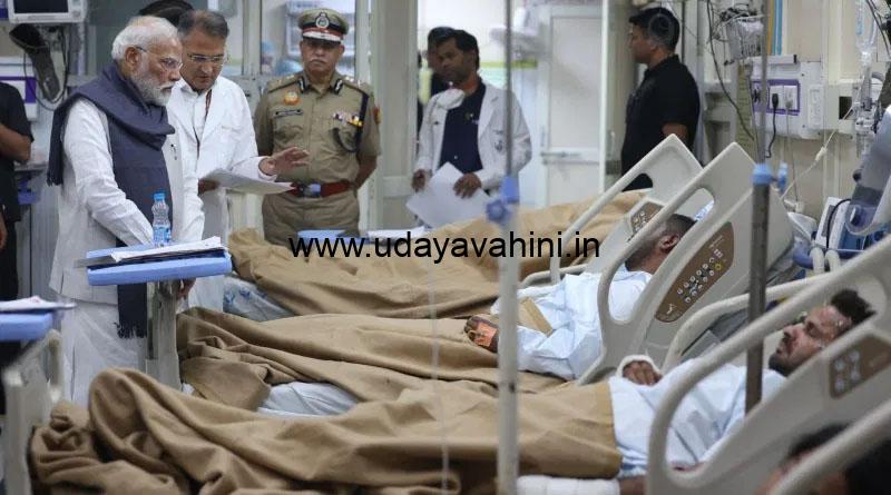ಗಾಯಾಳುಗಳನ್ನು ಭೇಟಿ ಮಾಡಿ ಆರೋಗ್ಯ ವಿಚಾರಿಸಿದ ಬಳಿಕ ಶೀಘ್ರ ಗುಣಮುಖರಾಗುವಂತೆ ಮೋದಿ ಹಾರೈಸಿದರು. ಅಲ್ಲದೇ ಆಸ್ಪತ್ರೆಯ ವೈದ್ಯರು ಗಾಯಾಳುಗಳ ಆರೋಗ್ಯದ ಕುರಿತು ಪ್ರಧಾನಿ ಮೋದಿಗೆ ಮಾಹಿತಿ ನೀಡಿದ್ದಾರೆ.