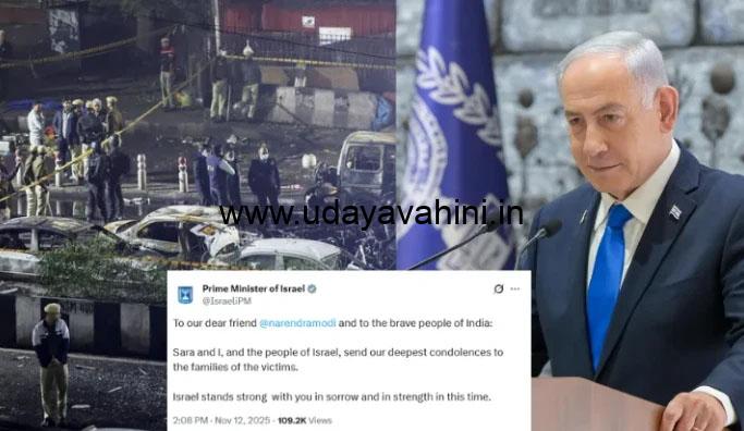 ಈ ಸಂದರ್ಭದಲ್ಲಿ ನೆತನ್ಯಾಹು ಭಾರತ-ಇಸ್ರೇಲ್ ಬಲವಾದ ದ್ವಿಪಕ್ಷೀಯ ಬಾಂಧವ್ಯವನ್ನು ಪುನರುಚ್ಚರಿಸಿದ್ದು, ಎರಡೂ ರಾಷ್ಟ್ರಗಳು “ಶಾಶ್ವತ ಸತ್ಯಗಳ ಮೇಲೆ ನಿಂತಿರುವ ಪ್ರಾಚೀನ ನಾಗರಿಕತೆಗಳು” ಎಂದು ಕೊಂಡಾಡಿದ್ದಾರೆ. “ನಮ್ಮ ದೇಶಗಳ ಬೆಳಕು ನಮ್ಮ ಶತ್ರುಗಳ ಕತ್ತಲೆಯನ್ನು ಮೀರಿಸುತ್ತದೆ, ಎಂದು ಅವರು ಹೇಳಿದ್ದಾರೆ.ಸುಭಾಷ್ ರಸ್ತೆಯ ಸಿಗ್ನಲ್ ಬಳಿ ಸಾಯಂಕಾಲ 7 ಗಂಟೆ ವೇಳೆಗೆ ಕಾರ್ ಬಾಂಬ್ ಸ್ಫೋಟ ಸಂಭವಿಸಿದ್ದು, ಕನಿಷ್ಠ 12 ಜನರು ಸಾವನ್ನಪ್ಪಿ, ಹಲವರು ಗಾಯಗೊಂಡಿದ್ದಾರೆ. ನಿಧಾನವಾಗಿ ಚಲಿಸುತ್ತಿದ್ದ ಹುಂಡೈ ಐ20 ಕಾರು ಇದ್ದಕ್ಕಿದ್ದಂತೆ ಸ್ಫೋಟಗೊಂಡು ಸುತ್ತಮುತ್ತಲಿನ ವಾಹನಗಳು ಜಖಂಗೊಂಡವು. ಕೇಂದ್ರ ಸರ್ಕಾರವು ಇದನ್ನು ಭಯೋತ್ಪಾದಕ ಕೃತ್ಯವೆಂದು ಘೋಷಿಸಿದ್ದು, **ರಾಷ್ಟ್ರೀಯ ತನಿಖಾ ಸಂಸ್ಥೆ ಯು ಹಿರಿಯ ಅಧಿಕಾರಿಗಳ ಮೇಲ್ವಿಚಾರಣೆಯಲ್ಲಿ ವಿಶೇಷ ತನಿಖಾ ತಂಡವನ್ನು ರಚಿಸಿದೆ. ದೆಹಲಿಯ ಈ ಸ್ಫೋಟದ ಹಿನ್ನೆಲೆಯಲ್ಲಿ ದೇಶದಾದ್ಯಂತ ಭದ್ರತಾ ಎಚ್ಚರಿಕೆ ಜಾರಿಯಾಗಿದೆ.