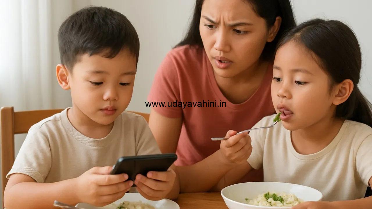 ಉದಯವಾಹಿನಿ, ಮಕ್ಕಳು ಊಟ, ತಿಂಡಿ ಮಾಡಲ್ಲ. ಇದು ಪೋಷಕರ ಸಾಮಾನ್ಯ ಪುಕಾರು. ಒಂದು ಹೊತ್ತಿನ ಊಟ ಮಾಡಿಸಬೇಕು ಅಂದ್ರೆ ದೊಡ್ಡ ಸಹವಾಸವೇ ಸರಿ. ಆದರೆ ಕೆಲವು ಅಮ್ಮ, ಅಜ್ಜಿಯಂದಿರು ಸ್ಮಾರ್ಟ್ ಐಡಿಯಾ ಮಾಡುತ್ತಾರೆ. ಅದುವೇ ಸ್ಮಾರ್ಟ್ ಫೋನ್. ಮಕ್ಕಳ ಕೈಗೆ ಮೊಬೈಲ್ ಕೊಟ್ಟು ಊಟ ಮಾಡಿಸ್ತಿರುವ ಟ್ರೆಂಡ್ ಇತ್ತೀಚಿನ ದಿನಗಳಲ್ಲಿ ಹೆಚ್ಚುತ್ತಿದೆ. ಇದು ಎಷ್ಟು ಡೇಂಜರ್ ಗೊತ್ತಾ..?ಹೌದು, ಊಟ ಮಾಡಿಸಬೇಕಾದರೆ ಸ್ಮಾರ್ಟ್ಫೋನ್, ಟಿವಿ, ಗ್ಯಾಜೆಟ್, ಇತ್ಯಾದಿ.. ತೋರಿಸುತ್ತಿದ್ದಾರೆ. ಇದು ಮಕ್ಕಳ ಬೆಳವಣಿಗೆ ಮೇಲೆ ತುಂಬಾನೇ ಪರಿಣಾಮ ಬೀರುತ್ತದೆ. ನೀವು ಅಷ್ಟೇ, ಡಿಜಿಟಲ್ ವಸ್ತುಗಳನ್ನ ಮಕ್ಕಳ ಮುಂದೆ ಇಟ್ಟು, ಊಟ ಮಾಡಿಸುತ್ತಿದ್ದೆ, ಈ ಪದ್ಧತಿಗೆ ಇವತ್ತಿನಿಂದಲೇ ಪೂರ್ಣ ವಿರಾಮ ಹೇಳಿಬಿಡಿ. ಇಲ್ಲದಿದ್ದರೆ ನಿಮ್ಮ ಮಗುವಿನ ಮೇಲೆ ಕೆಟ್ಟ ರೀತಿಯ ಪರಿಣಾಮ ಬೀರೋದಲ್ಲಿ ಎರಡು ಮಾತಿಲ್ಲ.