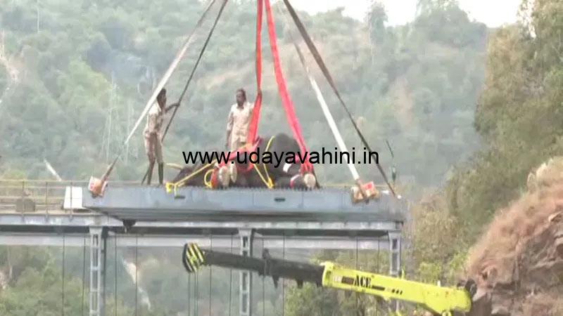 ಆರಂಭದಲ್ಲಿ ಅಧಿಕಾರಿಗಳು ಆನೆಗೆ ಆಹಾರ ನೀಡಿ, ಗನ್ನಲ್ಲಿ ಶೂಟ್ ಮಾಡುವ ಮೂಲಕ ಅರವಳಿಕೆ ಮದ್ದು ನೀಡಿದ್ದರು. ಆನೆ ಪ್ರಜ್ಞೆ ತಪ್ಪಿದ ಬಳಿಕ ಹೈಡ್ರಾಲಿಕ್ ಕ್ರೇನ್ ಮೂಲಕ ಹಗ್ಗವನ್ನು ಕಟ್ಟಿ ಕಂಟೇನರ್ ಮೇಲೆ ಇಟ್ಟು ಆನೆಯನ್ನು ಮೇಲಕ್ಕೆ ಎತ್ತಲಾಗಿದೆ. ಮೇಲೆ ಬಂದ ಆನೆಯನ್ನು ಲಾರಿ ಮೂಲಕ ಬೇರೆ ಕಡೆಗೆ ಶಿಫ್ಟ್ ಮಾಡಲಾಯಿತು. ಇನ್ನೂ ಸತತವಾಗಿ ನೀರಿನಲ್ಲಿದ್ದ ಕಾರಣ ಆನೆಯ ಸೊಂಡಿಲಿನ ತುದಿ ಬಿಳಿ ಬಣ್ಣಕ್ಕೆ ತಿರುಗಿದ್ದು ಕಾಲಿಗೆ ಫಂಗಸ್ ಆಗಿರುವ ಸಾಧ್ಯತೆಯಿದೆ.