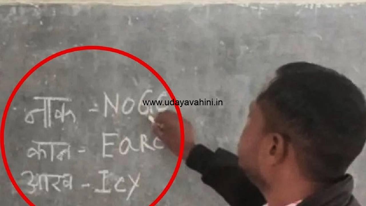 ಛತ್ತೀಸ್ಗಢದ ಬಲರಾಂಪುರ ಜಿಲ್ಲೆಯಲ್ಲಿನ ಮಚಂದಂಡ್ ಕೊಗ್ವಾರ್ ಪ್ರಾಥಮಿಕ ಶಾಲೆಯಲ್ಲಿ ಈ ಘಟನೆ ನಡೆದಿದ್ದು ಸಹಾಯಕ ಶಿಕ್ಷಕ ಪ್ರವೀಣ್ ಟೊಪ್ಪೊ ಅವರು ವಿದ್ಯಾರ್ಥಿಗಳಿಗೆ ತಪ್ಪಾದ ಇಂಗ್ಲಿಷ್ ಕಾಗುಣಿತಗಳನ್ನು ಹೇಳಿಕೊಟ್ಟಿದ್ದಾರೆ. ವಿಡಿಯೋದಲ್ಲಿ, ಅವರು ಮೂಗಿನ ‘ನೋಸ್’ ಎಂಬ ಪದಕ್ಕೆ “ನೋಗೆ” “ಇಯರ್” ಪದಕ್ಕೆ ‘ಇಯೆರ್’ ಮತ್ತು “ಐ” ಪದಕ್ಕೆ “ಐಯ್” ನಂತಹ ಕಾಗುಣಿತಗಳನ್ನು ಬರೆದು ಕಲಿಸುತ್ತಿರುವ ದೃಶ್ಯ ಕಂಡುಬಂದಿದೆ. ಅಲ್ಲದೆ, ಅವರಿಗೆ ವಾರದ ದಿನಗಳು ಮತ್ತು ಕುಟುಂಬದ ಸದಸ್ಯರ ಹೆಸರುಗಳನ್ನು ಬರೆಯಲು ಕೂಡ ತಿಳಿದಿರಲಿಲ್ಲ ಎಂದು ವರದಿ ಯಾಗಿದೆ.