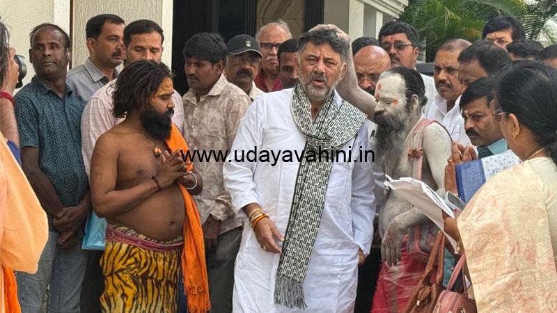ಡಿಕೆಶಿಗೆ ನಾಗ ಸಾಧುಗಳ ಆಶೀರ್ವಾದ ʻಪವರ್ ಫೈಟ್ʼ ನಡುವೆ ಕಾಶಿಯಿಂದ ಬಂದ ನಾಗ ಸಾಧುಗಳ ಆಶೀರ್ವಾದ ಡಿಸಿಎಂ ಡಿಕೆಶಿ ಅವರಿಗೆ ದೊರೆತಿದೆ. ಸದಾಶಿವನಗರದಲ್ಲಿರುವ ಅವರ ನಿವಾಸಕ್ಕೆ ಬಂದ ನಾಗ ಸಾಧುಗಳು ಡಿಕೆಶಿ ತಲೆ ಮೇಲೆ ಕೈ ಇಟ್ಟು ಆಶೀರ್ವಾದ ಮಾಡಿದ್ದಾರೆ. ಈ ಬಗ್ಗೆ ಪ್ರತಕ್ರಿಯಿಸಿದ ಸಾಧುಗಳು, ಶಿವಕುಮಾರ್ ಸಿಎಂ ಆಗಲೆಂದು ಆಶೀರ್ವಾದ ಮಾಡಿದ್ದೇನೆ. ಅವ್ರು ಸಿಎಂ ಆಗ್ತಾರೆ ಎಂದು ಹೇಳಿ ತೆರಳಿದ್ದಾರೆ.