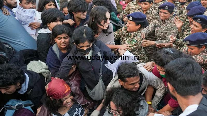 ಉದಯವಾಹಿನಿ, ನವದೆಹಲಿ: ಮಿತಿಮೀರಿದ ವಾಯು ಮಾಲಿನ್ಯದಿಂದ ತೀವ್ರ ಅಸಮಾಧಾನಗೊಂಡು ದೆಹಲಿಯ ಇಂಡಿಯಾ ಗೇಟ್ ಬಳಿ ನಡೆಸುತ್ತಿದ್ದ ಪ್ರತಿಭಟನೆ ಸೋಮವಾರ ಹಿಂಸಾತ್ಮಕ ರೂಪಕ್ಕೆ ತಿರುಗಿದೆ. ಪ್ರತಿಭಟನೆ ವೇಳೆ ಕೆಲವರು ಚಿಲ್ಲಿ, ಪೆಪ್ಪರ್ ಸ್ಪ್ರೆ ಬಳಸಿ ಪೊಲೀಸರ ಮೇಲೆ ಹಲ್ಲೆ ನಡೆಸಿದ ಆರೋಪದ ಮೇಲೆ 15ಕ್ಕೂ ಹೆಚ್ಚು ಪ್ರತಿಭಟನಾಕಾರರನ್ನ ಬಂಧಿಸಿದ್ದಾರೆ. ಅಲ್ಲದೇ ಪ್ರತಿಭಟನೆ ವೇಳೆ ಇತ್ತೀಚೆಗೆ ಎನ್ಕೌಂಟರ್ಗೆ ಬಲಿಯಾದ ನಕ್ಸಲ್ ಮುಖಂಡ ಮಾದ್ವಿ ಹಿಡ್ಮಾನ ಪೋಸ್ಟರ್ಗಳು ಕಂಡುಬಂದಿತು. ನಕ್ಸಲ್ ಮುಖಂಡನ ಪೋಸ್ಟರ್ ಹಿಡಿದ ಗುಂಪು ಹಿಡ್ಮಾ ಪರ ಘೋಷಣೆ ಕೂಗಿದ ಬಳಿಕ ಪ್ರತಿಭಟನೆ ಹಿಂಸಾತ್ಮಕ ರೂಪಕ್ಕೆ ತಿರುಗಿದೆ ಅನ್ನೋದು ಗೊತ್ತಾಗಿದೆ.