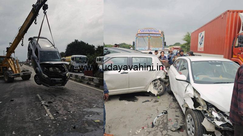 ಪೊಲೀಸರು ಕ್ರೇನ್ ಮೂಲಕ ಕಾರುಗಳನ್ನ ರಸ್ತೆಯಿಂದ ತೆರವು ಮಾಡಿದ್ದಾರೆ. ಗಾಯಾಳುಗಳನ್ನ ಹತ್ತಿರದ ಖಾಸಗಿ ಆಸ್ಪತ್ರೆಗೆ ದಾಖಲಿಸಲಾಗಿದೆ.