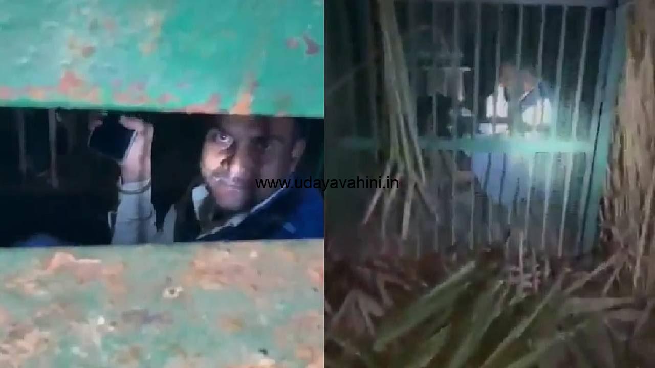 ಮರುದಿನ ಬೆಳಗ್ಗೆ ಗ್ರಾಮಸ್ಥರು ಚಿರತೆಯ ಬದಲು ಬೋನಿನೊಳಗೆ ಸಿಲುಕಿರುವ ವ್ಯಕ್ತಿಯನ್ನು ನೋಡಿ ಅಚ್ಚರಿಗೊಂಡಿದ್ದಾರೆ. ಘಟನೆಯ ದೃಶ್ಯವನ್ನು ಚಿತ್ರೀಕರಿಸಿ ಸಾಮಾಜಿಕ ಮಾಧ್ಯಮದಲ್ಲಿ ಹಂಚಿಕೊಳ್ಳಲಾಗಿದೆ. ಇದರ ವಿಡಿಯೊ ವೈರಲ್ ಆಗಿದೆ. ಪ್ರದೀಪ್ ಎಂದು ಗುರುತಿಸಲ್ಪಟ್ಟ ವ್ಯಕ್ತಿ, ತಡರಾತ್ರಿ ಬೋನಿನೊಳಗೆ ಮೇಕೆಯನ್ನು ನೋಡಿದ್ದಾನೆ. ಆದರೆ ಅದು ಚಿರತೆಗೆ ಹೆಣೆಯಲಾದ ಬಲೆ ಎಂದು ಅವನಿಗೆ ತಿಳಿದಿರಲಿಲ್ಲ ಎಂದು ಹೇಳಿದ್ದಾನೆ. ಮದ್ಯದ ಅಮಲಿನಲ್ಲಿದ್ದ ಪ್ರದೀಪ್ ಜೀವಂತ ಮೇಕೆಯನ್ನು ಕದಿಯಲು ಪ್ರಯತ್ನಿಸಿದ್ದ. ಆದರೆ ಹೊರಬರಲಾರದೆ ಮೇಕೆಯೊಂದಿಗೆ ಪ್ರದೀಪ್ ಇಡೀ ರಾತ್ರಿ ಒಳಗೆ ಸಿಲುಕಿಕೊಂಡಿದ್ದನು.