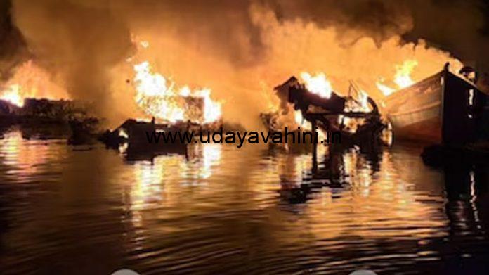 ಉದಯವಾಹಿನಿ, ಕೊಲ್ಲಂ: ಇಲ್ಲಿನ ಅಷ್ಟಮುಡಿ ಸರೋವರದಲ್ಲಿ ಲಂಗರು ಹಾಕಿದ್ದ ಸುಮಾರು 10 ಮೀನುಗಾರಿಕಾ ದೋಣಿಗಳು ಭಾರಿ ಬೆಂಕಿ ಅವಘಡದಲ್ಲಿ ಸುಟ್ಟು ಭಸವಾಗಿವೆ.