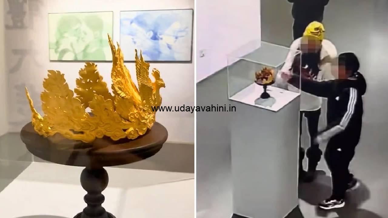 ಚೀನಾದ ಬೀಜಿಂಗ್ನಲ್ಲಿರುಚ ಎಕ್ಸ್ ಮ್ಯೂಸಿಯಂನಲ್ಲಿ ಈ ಘಟನೆ ನಡೆದಿದೆ. ಸಾರ್ವಜನಿಕರಿಗಾಗಿ ಮ್ಯೂಸಿಯಂನಲ್ಲಿ ಕಲಾ ಪ್ರದರ್ಶನ ಹಮ್ಮಿಕೊಳ್ಳಲಾಗಿದ್ದು ಈ ವೇಳೆ ಈ ಘಟನೆ ಸಂಭವಿಸಿದೆ. ಮಾಹಿತಿ ಪ್ರಕಾರ, ಚಿಕ್ಕ ಮಗುವೊಂದು ಅಲ್ಲಿದ್ದ ಗಾಜನ್ನು ಪದೇ ಪದೆ ಸ್ಪರ್ಶಿಸಿದೆ. ಈ ವೇಳೆ ಅಚಾನಕ್ಕಾಗಿ ಗಾಜಿನ ಕವಚ ತಪ್ಪಿ ಕೆಳಗೆ ಬಿದ್ದಿದೆ. ಇದರೊಂದಿಗೆ ಒಳಗಿದ್ದ ಬೆಲೆಬಾಳುವ ಚಿನ್ನದ ಕಿರೀಟವೂ ನೆಲಕ್ಕೆ ಉರುಳಿದೆ. ಈ ಕಿರೀಟವನ್ನು ಸುಮಾರು 2 ಕೆಜಿ ಶುದ್ಧ ಚಿನ್ನದಿಂದ ತಯಾರಿಸಲಾಗಿದೆ. ಇದನ್ನು ಖ್ಯಾತ ಕಲಾವಿದ ಜಾಂಗ್ ಯುಡಾಂಗ್ ಪತ್ನಿ ಸ್ಟಾರ್ ಜಾಂಗ್ ಕೈಯಿ ಅವರಿಗಾಗಿ ವಿವಾಹದ ಉಡುಗೊರೆಯಾಗಿ ವೈಯಕ್ತಿಕವಾಗಿ ವಿನ್ಯಾಸಗೊಳಿಸಿದ್ದಾರೆ. ಈ ದಂಪತಿ ಆಯೋಜಿಸಿದ್ದ ಪ್ರದರ್ಶನದ ಭಾಗವಾಗಿ ಕಿರೀಟವನ್ನು ಇಡಲಾಗಿತ್ತು. ಜ್ಯುವೆಲ್ಲರಿ ತಜ್ಞರ ಪ್ರಕಾರ, ಈ ಕಿರೀಟವನ್ನು ಮೊದಲಿನ ರೂಪಕ್ಕೆ ತರಲು ಕನಿಷ್ಠ 51.5 ಲಕ್ಷ ರುಪಾಯಿ ಖರ್ಚು ಆಗಲಿದೆ ಎಂದು ಅಂದಾಜಿಸಲಾಗಿದೆ.
