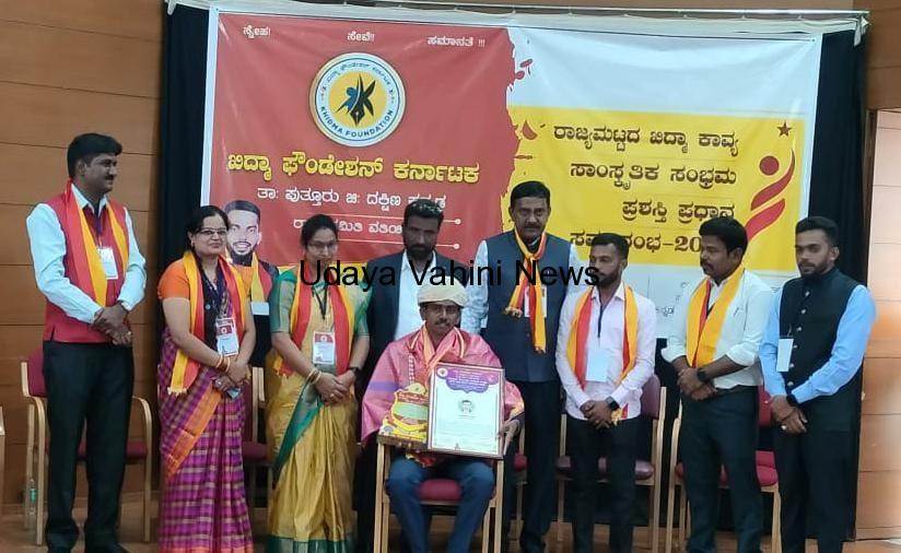 ಉದಯವಾಹಿನಿ, ಬೀದರ್ : ಬೆಂಗಳೂರಿನಲ್ಲಿ ಇತ್ತೀಚೆಗೆ ಖಿದ್ಮಾ ಫೌಂಡೇಶನ್ ಕರ್ನಾಟಕ ವತಿಯಿಂದ ಹಮ್ಮಿಕೊಂಡಿದ್ದ ಕಾವ್ಯ ಮತ್ತು ಸಂಸ್ಕೃತಿಕ ಸಂಭ್ರಮ ಕಾರ್ಯಕ್ರಮದಲ್ಲಿ ರಾಜಕುಮಾರ ಮೇತ್ರೆ ರಕ್ಷಾಳ ಅವರಿಗೆ ಡಾ. ಏ.ಪಿ.ಜೆ ಅಬ್ದುಲ್ ಕಲಾಂ ಸೇವಾ ರತ್ನ ಪ್ರಶಸ್ತಿ ನೀಡಿ ಗೌರವಿಸಲಾಯಿತು. ಔರಾದ್ ತಾಲೂಕಿನ ರಕ್ಷಾಳ ಗ್ರಾಮದ ರಾಜಕುಮಾರ ರಕ್ಷಾಳ ಅವರು ಹಲವಾರು ವರ್ಷಗಳಿಂದ ಧರ್ಮಸ್ಥಳ ಗ್ರಾಮಾಭಿವೃದ್ಧಿ ಯೋಜನೆಯಲ್ಲಿ ಕಾರ್ಯ ನಿರ್ವಹಿಸುತ್ತಿದ್ದು ಜೋತೆಗೆ ಸಾಮಾಜಿಕ ಕಾರ್ಯಗಳಲ್ಲಿ ತಮ್ಮನ್ನು ತಾವು ತೊಡಗಿಸಿಕೂಂಡಿದ್ದಾರೆ. ಪ್ರಶಸ್ತಿ ಪ್ರದಾನ ಸಮಾರಂಭದಲ್ಲಿ ಡಾ. ಲತಾ ಮೂರ್ತಿ, ಯುಸೋಫ ಎಚ್. ಬಿ, ಡಾ. ಜ್ಯೋತಿ ಶ್ರೀನಿವಾಸ್, ಮಹಮ್ಮದ್ ಹುಮಾಯುನ್, ಮಹೇಬೂಬಸಾಹೇಬ್ ವೈ. ಜೆ, ಡಾ. ಎಂ. ಎಂ. ಭಾಷ ನಂದಿ, ಚಂದ್ರಶೇಖರ ಸಿ. ಎನ್, ಖಿದ್ಮಾ ಫೌಂಡೇಶನ್ ಅಧ್ಯಕ್ಷ ಹಾಸಿಂ ಬನ್ನೂರು, ಅಮಿತಾ ಅಶೋಕ ಪ್ರಸಾದ್, ಖಿದ್ಮಾ ಫೌಂಡೇಶನ್ ರಾಜ್ಯ ಸಂಚಾಲಕ ಆಮಿರ್ ಬನ್ನೂರು, ಅಶ್ವಿನಿ ಎಸ್, ಅಂಗಡಿ ಸೇರಿದಂತೆ ಇತರರು ಇದ್ದರು.