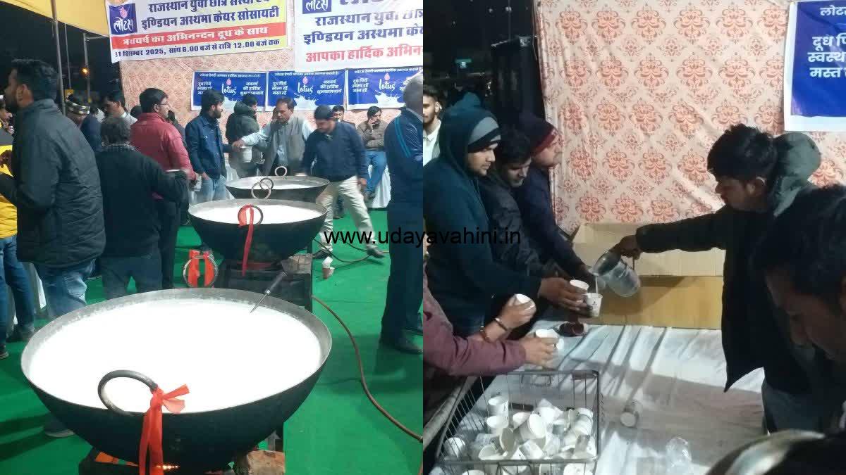 ರಾಜಸ್ಥಾನ ಯುವ ವಿದ್ಯಾರ್ಥಿಗಳ ಸಂಘಟನೆ ಮತ್ತು ಭಾರತೀಯ ಅಸ್ತಮಾ ಆರೈಕೆ ಸಂಘವು ರಾಜಸ್ಥಾನ ವಿಶ್ವವಿದ್ಯಾಲಯದ ದ್ವಾರದಲ್ಲಿ ಹಾಲು ವಿತರಿಸಿತು. ಚಿಕ್ಕ ಮಕ್ಕಳಿಂದ ಹಿಡಿದು ಹಿರಿಯರವರೆಗೆ ಸಾವಿರಾರು ಜನರು ಹಾಲು ಸ್ವೀಕರಿಸಿ ಸೇವಿಸಿದರು. ಈ ಕುರಿತು ಹೆಚ್ಚುವರಿ ಪೊಲೀಸ್ ಆಯುಕ್ತ ರಾಜೀವ್ ಪಚಾರ್ ಮೆಚ್ಚುಗೆ ವ್ಯಕ್ತಪಡಿಸಿ, “ರಾಜಸ್ಥಾನ ವಿವಿಯ ದ್ವಾರದಲ್ಲಿ ಹಾಲು ವಿತರಣಾ ಕಾರ್ಯಕ್ರಮ ಮಾಡಿರುವುದು ಅತ್ಯಂತ ಶ್ಲಾಘನೀಯ. ಇದು ಹೊಸ ವರ್ಷವನ್ನು ಮದ್ಯದ ಬದಲು ಹಾಲಿನೊಂದಿಗೆ ಪ್ರಾರಂಭಿಸಬೇಕೆಂಬ ಸಂದೇಶ ನೀಡುತ್ತದೆ. ಹೊಸ ವರ್ಷ ಎಲ್ಲರಿಗೂ ಶುಭವಾಗಬೇಕು. ಅದಕ್ಕಾಗಿ ಮೊದಲ ದಿನದಿಂದಲೇ ಒಳ್ಳೆಯ ಆರಂಭ ಅತ್ಯಗತ್ಯ. ಹೊಸ ವರ್ಷವನ್ನು ಶಾಂತಿಯುತವಾಗಿ ಆಚರಿಸೋಣ” ಎಂದು ಅವರು ಮನವಿ ಮಾಡಿದರು. ವಿಶ್ವವಿದ್ಯಾಲಯದ ದ್ವಾರದಲ್ಲಿ ಹಾಲು ವಿತರಣಾ ಕಾರ್ಯಕ್ರಮವು 21 ವರ್ಷಗಳ ಹಿಂದೆ ಹೊಸ ವರ್ಷದ ಮುನ್ನಾದಿನದಂದು 500 ಲೀಟರ್ ಹಾಲು ವಿತರಿಸುವ ಮೂಲಕ ಶುರುವಾಗಿತ್ತು. ಇದು ಮುಂದಿನ ವರ್ಷಗಳಲ್ಲಿ ಬೆಳೆದು ಈಗ 8,000 ಲೀಟರ್ ಹಾಲು ವಿತರಣೆಯವರೆಗೆ ತಲುಪಿದೆ. ಇದೀಗ ಜೈಪುರ ನಗರದಾದ್ಯಂತ 200ಕ್ಕೂ ಹೆಚ್ಚು ಸ್ಥಳಗಳಲ್ಲಿ ಹಾಲು ವಿತರಣಾ ಕಾರ್ಯಕ್ರಮಗಳು ನಡೆಯುತ್ತಿವೆ.