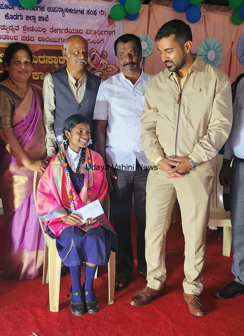 ಉದಯವಾಹಿನಿ ಕುಶಾಲನಗರ:-ಕರ್ನಾಟಕದ ಜೀ ಕನ್ನಡದ ವಾಹಿನಿಯಲ್ಲಿ ಪ್ರಸಾರವಾದ ಸರಿಗಮಪ ಲಿಟಲ್ ಚಾಂಪ್ಸ್ 19ರ ಸೀಸನ್ ನಲ್ಲಿ ಸ್ಪರ್ಧಿಸಿ ವಿನ್ನರ್ ಪಟ್ಟ ಪಡೆದಿದ್ದ ಕುಶಾಲನಗರ ತಾಲೂಕಿನ ಪ್ರೌಢಶಾಲೆಯ ವಿದ್ಯಾರ್ಥಿನಿ ಪ್ರಗತಿ ಬಡಿಗೇರ್ ನ ಹಾಡಿಗೆ ಇಡೀ ಕರ್ನಾಟಕವೇ ಮಂತ್ರಮುಗ್ಧವಾಗಿತ್ತು. ಈ ಹಿನ್ನಲೆ ಇತ್ತೀಚೆಗೆ ಇಲ್ಲಿನ ಸರಕಾರಿ ಪದವಿ ಪೂರ್ವ ಕಾಲೇಜಿನ ಪ್ರೌಢಶಾಲಾ ವಿಭಾಗದಲ್ಲಿ ಆಯೋಜಿಸಿದ್ದ ಪ್ರತಿಭಾ ಪುರಸ್ಕಾರ ಕಾರ್ಯಕ್ರಮದಲ್ಲಿ ಮಡಿಕೇರಿ ಕ್ಷೇತ್ರದ ಶಾಸಕರಾದ ಡಾಕ್ಟರ್ ಮಂತರ್ ಗೌಡರವರು ಮುಖ್ಯ ಅತಿಥಿಯಾಗಿ ಆಗಮಿಸಿದ ಸಂದರ್ಭ ಪ್ರಗತಿಬಡಿಗೇರನ ಸಾಧನೆಯನ್ನು ಮನಗಂಡು ಶಾಸಕರು ಆಕೆಯನ್ನು ವೇದಿಕೆಗೆ ಕರೆಸಿ ಸನ್ಮಾನಿಸಿ ಪ್ರೋತ್ಸಾಹಿಸಿ ಶುಭ ಹಾರೈಸಿದ ರು