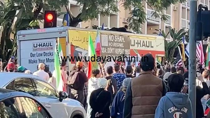 ಟ್ರಕ್ ಮೆರಣಿಗೆಯಲ್ಲಿ ಪಾಲ್ಗಂಡಿದ್ದ ಜನರ ಮೇಲೆ ಹರಿದಿದೆ. ಹಲವು ಮಂದಿ ಗಾಯಗೊಂಡಿದ್ದಾರೆ.ಲಾಸ್ ಏಂಜಲೀಸ್ನ ವೆಸ್ಟ್ವುಡ್ ಪ್ರದೇಶದ ವಿಲ್ಶೈರ್ ಫೆಡರಲ್ ಕಟ್ಟಡದ ಹೊರಗೆ ಜನರು ಜಮಾಯಿಸಿದ್ದರು. ಎಂಇಕೆಯ ಸ್ಟಿಕ್ಕರ್ ಹೊಂದಿರುವ ಟ್ರಕ್ ಪ್ರತಿಭಟನಾಕಾರರ ಮೇಲೆ ನುಗ್ಗಿ ವೇಗವಾಗಿ ಓಡಿತು. ದಾಳಿಯಲ್ಲಿ ಹಲವಾರು ಪ್ರತಿಭಟನಾಕಾರರು ಗಾಯಗೊಂಡರು. ಆ ಟ್ರಕ್ 1953 ರ ದಂಗೆಯ ಚರ್ಚೆ ಸೇರಿದಂತೆ ಇರಾನ್ನ ಇತಿಹಾಸಕ್ಕೆ ಸಂಬಂಧಿಸಿದ ರಾಜಕೀಯ ಸಂದೇಶವನ್ನು ಹೊಂದಿತ್ತು.