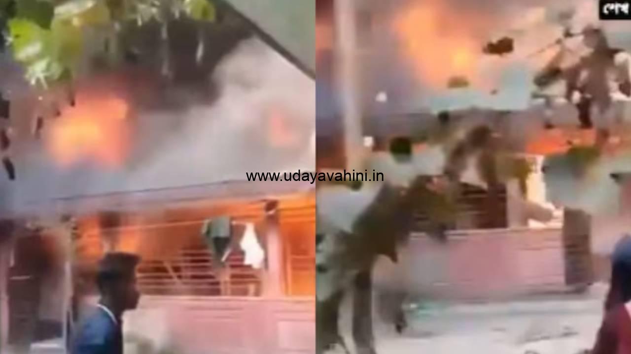 ಉದಯವಾಹಿನಿ ,ಢಾಕಾ : ಆಂತರಿಕ ಸಂಘರ್ಷದಲ್ಲಿ ನಲುಗಿರುವ ಬಾಂಗ್ಲಾದೇಶದಲ್ಲಿ ಹಿಂದೂಗಳ ಮೇಲಿನ ದೌರ್ಜನ್ಯ ಮುಂದುವರೆದಿದೆ. ಹಿಂದೂ ಶಿಕ್ಷಕರೊಬ್ಬರ ಮನೆಯನ್ನು ಗುರಿಯಾಗಿಸಿಕೊಂಡು ಬೆಂಕಿ ಹಚ್ಚಲಾಗಿದೆ. ದಾಳಿಕೋರರು ರಾತ್ರಿ ವೇಳೆ ಮನೆಗೆ ಬೆಂಕಿ ಹಚ್ಚಿದ ಘಟನೆ ಸಂಭವಿಸಿದೆ. ಅದೃಷ್ಟವಶಾತ್, ಘಟನೆಯ ಸಮಯದಲ್ಲಿ ಉಟುಂಬ ಸದಸ್ಯರು ಸುರಕ್ಷಿತವಾಗಿ ತಪ್ಪಿಸಿಕೊಳ್ಳುವಲ್ಲಿ ಯಶಸ್ವಿಯಾಗಿದ್ದಾರೆ. ಶಿಕ್ಷಕ ಬೀರೇಂದ್ರ ಕುಮಾರ್ ಎಂದು ಗುರುತಿಸಿಕೊಳ್ಳಲಾಗಿದೆ. ಘಟನೆಯ ವಿಡಿಯೊ ವೈರಲ್ ಆಗಿದೆ.