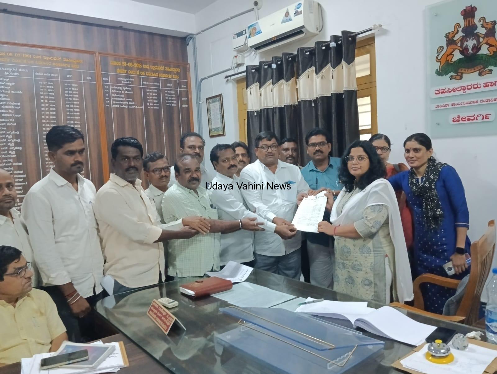 ಉದಯವಾಹಿನಿ ಜೇವರ್ಗಿ:ಸರಕಾರಿ ನೌಕರರ ಸಂಘ ತಾಲೂಕು ಶಾಖೆ ಜೇವರ್ಗಿ ವತಿಯಿಂದ ಮಾನ್ಯ ರಾಜಾಧ್ಯಕ್ಷರಾದ ಶ್ರೀ ಸಿ.ಎಸ್ ಷಡಕ್ಷರಿ ರವರ ಮೇಲೆ ಇಲ್ಲ ಸಲ್ಲದ ಆರೋಪ ಮಾಡಿ ಸರಕಾರ ಮಟ್ಟದಲ್ಲಿ ಸುಳ್ಳು ಮನವಿ ಸಲ್ಲಿಸಿದ ಶ್ರೀ ಶಾಂತಾರಾಮ ಹಾಗೂ ಸಂಗಡಿಗರು ಇವರ ಮೇಲೆ ಕಾನೂನು ಕ್ರಮ ಜರುಗಿಸಲು ಮಾನ್ಯ ತಾಲೂಕ ತಹಸೀಲ್ದಾರ ರವರಾದ ಶ್ರೀಮತಿ ರಾಜೇಶ್ವರಿ ಮೇಡಂ ರವರಿಗೆ ಮನವಿ ಸಲ್ಲಿಸಲಾಯಿತು.ಈ ಸಂದರ್ಭದಲ್ಲಿ ನೌಕರರ ಸಂಘದ ಅಧ್ಯಕ್ಷರಾದ ಶ್ರೀ ಗುಡುಲಾಲ ಶೇಖ, ಕಾರ್ಯದರ್ಶಿಯಾದ ಶ್ರೀ ಬಸವರಾಜ ತೆಲ್ಕರ, ಖಜಾಂಚಿಯಾದ ಶ್ರೀ ಈರಣ್ಣ ಹಾಲಶೆಟ್ಟಿ ರಾಜ್ಯ ಪರಿಪರಿಷತ್ ಸದಸ್ಯರಾದ ಶ್ರೀ ರುದ್ರಪ್ಪ ಚಟ್ನಳ್ಳಿ, ಗೌರವ ಅಧ್ಯಕ್ಷರಾದ ಶ್ರೀ ಪೀರಪ್ಪ ಜಮಾದಾರ, ಪ್ರೌಢ ಶಾಲಾ ಶಿಕ್ಷಕರ ಸಂಘ ಬೆಂಗಳೂರು ಸಂಘದ ಖಜಾಂಚಿಯಾದ ಶ್ರೀ ಧನಸಿಂಗ ರಾಠೋಡ ಮತ್ತು ಸಂಘದ ಹಿರಿಯ ಉಪಾಧ್ಯಕ್ಷರಾದ ಶ್ರೀ ಭಾಗಣ್ಣ ಕನ್ನೋಳ್ಳಿ, ಶ್ರೀ ಶರಣಪ್ಪ ನಾಟಿಕಾರ, ಪ್ರಾಥಮಿಕ ಶಾಲಾ ಶಿಕ್ಷಕರ ಸಂಘ ಜಿಲ್ಲಾ ಘಟಕ ಕಲಬುರಗಿ ಯ ಸಂಘಟನಾ ಕಾರ್ಯದರ್ಶಿಗಳಾದ ಶ್ರೀ ಗೊಲ್ಲಾಳಪ್ಪ ಯಾತನೂರ, ಶ್ರೀ ಶಿವಾನಂದ ದಾನಮಗುಡಿ, ಶ್ರೀ ಬಾಬು ನಾಯಕ, ಶ್ರೀ ಸಂಗಪ್ಪ ಆಲೂರ, ಶ್ರೀ ಧರ್ಮರಾಜ, ಶ್ರೀಮತಿ ಸುರೇಖಾ ನಡುಮನಿ, ಶ್ರೀಮತಿ ವಿಶಾಲಾ ಕಾಂಬಳೆ ಇತರರು ಕೂಡಿಕೊಂಡು ಮಾನ್ಯ ತಹಸೀಲ್ದಾರ ರವರಿಗೆ ಮಿನಿ ವಿಧಾನ ಸೌಧ ಜೇವರ್ಗಿಯಲ್ಲಿ ದಿನಾಂಕ: 24.07.2023 ರಂದು ಮಧ್ಯಾಹ್ನ 1.30 ಗಂಟೆಗೆ ಮನವಿ ಸಲ್ಲಿಸಯಲಾಯಿತು.