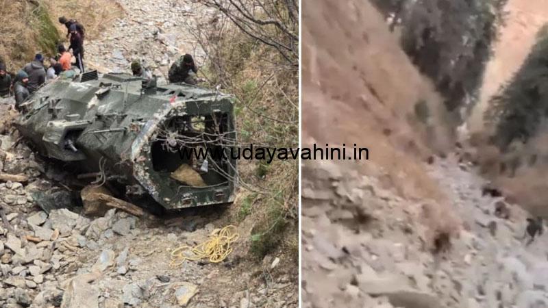 ಕಾರ್ಯಾಚರಣೆಗಾಗಿ ತೆರಳುತ್ತಿದ್ದ ಕ್ಯಾಸ್ಪಿರ್ ಎಂಬ ಗುಂಡು ನಿರೋಧಕ ಸೇನಾ ವಾಹನವು ಖನ್ನಿ ಮೇಲ್ಭಾಗದಲ್ಲಿ ಭದೇರ್ವಾ-ಚಂಬಾ ಅಂತರರಾಜ್ಯ ರಸ್ತೆಯಿಂದ ತೆರಳುತ್ತಿದ್ದಾಗ ಕಮರಿಗೆ ಉರುಳಿ ಬಿದ್ದಿದೆ ಎಂದು ಅಧಿಕಾರಿಗಳು ತಿಳಿಸಿದ್ದಾರೆ.