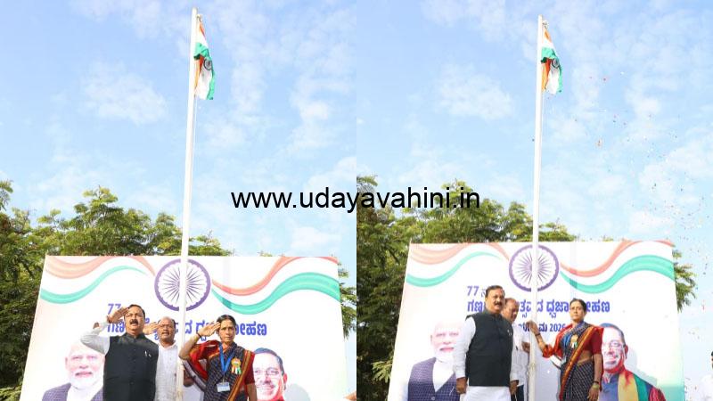 ಉದಯವಾಹಿನಿ , ಹುಬ್ಬಳ್ಳಿ: ಕೇಂದ್ರ ಆಹಾರ ಮತ್ತು ನಾಗರಿಕ ಸರಬರಾಜು ಸಚಿವ ಪ್ರಹ್ಲಾದ್ ಜೋಶಿ ಅವರ ನವದೆಹಲಿಯ ಗೃಹ ಕಚೇರಿ ಮತ್ತು ಹುಬ್ಬಳ್ಳಿ ಕಾರ್ಯಾಲಯದಲ್ಲಿ ಸ್ತ್ರೀ ಸಬಲೀಕರಣದ ಪ್ರತೀಕವಾಗಿ 77ನೇ ಗಣರಾಜ್ಯೋತ್ಸವವನ್ನು ವಿಭಿನ್ನವಾಗಿ ಆಚರಿಸಲಾಯಿತು. ನವದೆಹಲಿಯ ) ಗೃಹ ಕಚೇರಿ ಆವರಣದಲ್ಲಿ ಸಚಿವರು ತಮ್ಮ ಸಹೋದ್ಯೋಗಿಗಳು ಮತ್ತು ರಕ್ಷಣಾ ಸಿಬ್ಬಂದಿಯೊಂದಿಗೆ ಧ್ವಜಾರೋಹಣ ನೆರವೇರಿಸಿದರು. ಇನ್ನೂ ಹುಬ್ಬಳ್ಳಿ ಕಾರ್ಯಾಲಯದಲ್ಲಿ ಸ್ತ್ರೀ ಗೌರವದ ಪ್ರತೀಕ ಎನ್ನುವಂತೆ `ಸ್ವಚ್ಛ ವಾಹಿನಿ ಮಹಿಳಾ ಚಾಲಕಿ’ಯಿಂದ ಧ್ವಜಾರೋಹಣ ನೆರವೇರಿಸಿದ್ದು ವಿಶೇಷವಾಗಿತ್ತು.