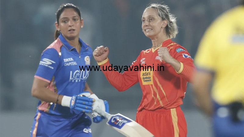 ಉದಯವಾಹಿನಿ, ವಡೋದರಾ: ನಾಯಕಿ ಹರ್ಮನ್ ಪ್ರೀತ್ ಕೌರ್ ಸ್ಫೋಟಕ ಫಿಫ್ಟಿ ಬ್ಯಾಟಿಂಗ್ ಹೊರತಾಗಿಯೂ ಗುಜರಾತ್ ಜೈಂಟ್ಸ್ ಮಹಿಳಾ ತಂಡವು ಮುಂಬೈ ಇಂಡಿಯನ್ಸ್ ಮಹಿಳಾ ತಂಡದ (MI Women) ವಿರುದ್ಧ 11 ರನ್ಗಳ ರೋಚಕ ಗೆಲುವು ಸಾಧಿಸಿದೆ. ಇದರೊಂದಿಗೆ ಇದೇ 4ನೇ ಆವೃತ್ತಿಯ ಮಹಿಳಾ ಪ್ರೀಮಿಯರ್ ಲೀಗ್ ಆವೃತ್ತಿಯ ಪ್ಲೇ ಆಫ್ಗೆ ಗುಜರಾತ್ ಜೈಂಟ್ಸ್ ಎಂಟ್ರಿ ಕೊಟ್ಟಿದೆ.WPL ಅಂಕಪಟ್ಟಿಯಲ್ಲಿ ಸದ್ಯ 8ರಲ್ಲಿ 6 ಪದ್ಯ ಗೆದ್ದಿರುವ ಆರ್ಸಿಬಿ 12 ಅಂಕಗಳೊಂದಿಗೆ ಅಗ್ರಸ್ಥಾನದಲ್ಲಿದೆ. ಜೊತೆಗೆ ಫೈನಲ್ ಪ್ರವೇಶಿಸಿದ ಈ ಆವೃತ್ತಿಯ ಮೊದಲ ತಂಡವಾಗಿದೆ. ಇನ್ನೂ ಸೆಮಿ ಫೈನಲ್ಗೆ ಗುಜರಾತ್ ಜೈಂಟ್ಸ್ ಎಂಟ್ರಿಕೊಟ್ಟಿದ್ದು, ಇನ್ನೊಂದು ಸ್ಥಾನಕ್ಕೆ ಡೆಲ್ಲಿ ಕ್ಯಾಪಿಟಲ್ಸ್ ಹಾಗೂ ಮುಂಬೈ ಇಂಡಿಯನ್ಸ್ ನಡುವೆ ಪೈಪೋಟಿ ನಡೆಯುತ್ತಿದೆ. ಡೆಲ್ಲಿ ಕ್ಯಾಪಿಟಲ್ಸ್ ಶನಿವಾರ ಯುಪಿ ವಾರಿಯರ್ಸ್ ವಿರುದ್ಧ ತನ್ನ ಕೊನೆಯ ಲೀಗ್ ಪಂದ್ಯವನ್ನಾಡಲಿದೆ. ಒಂದು ವೇಳೆ ಈ ಪಂದ್ಯದಲ್ಲಿ ಜೆಮಿಮಾ ರೋಡ್ರಿಗ್ಸ್ ನಾಯಕತ್ವದ ಡೆಲ್ಲಿ ಗೆದ್ದರೆ, ಸೆಮಿಸ್ಗೆ 2ನೇ ತಂಡವಾಗಿ ಎಂಟ್ರಿ ಕೊಡಲಿದೆ. ಇಲ್ಲದಿದ್ದರೆ, 6 ಅಂಕ ಗಳಿಸಿದ್ದರೂ, ನೆಟ್ ರನ್ ರೇಟ್ ಆಧಾರದ ಮೇಲೆ ಮುಂಬೈ ಇಂಡಿಯನ್ಸ್ ಸೆಮಿಸ್ ಪ್ರವೇಶಿಸಲಿದೆ.