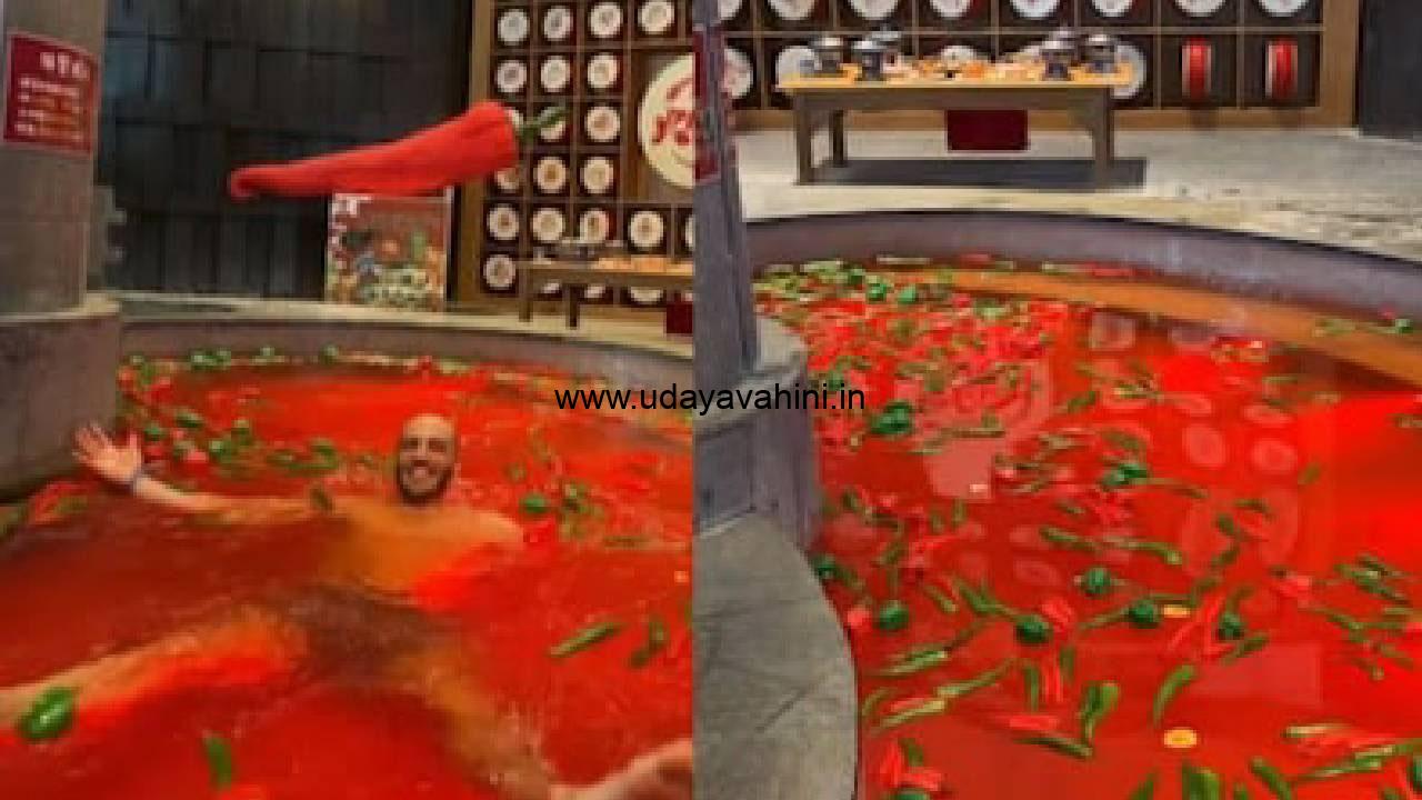 ಉದಯವಾಹಿನಿ, ಬೀಜಿಂಗ್,: ಸಾಮಾನ್ಯವಾಗಿ ರಜಾ ದಿನದಲ್ಲಿ ರೆಸಾರ್ಟ್ಗೆ ಟ್ರಿಪ್ ಹೋಗುವವರು ಅನೇಕರಿದ್ದಾರೆ. ಈಜು ಕೊಳ, ಸ್ಪಾ, ಜಿಮ್ಮ ತ್ತು ಸಮುದ್ರ ವಿಹಾರದಂತ ಆಧುನಿಕ ಸೌಕರ್ಯಗಳು ಇಲ್ಲಿರುತ್ತದೆ. ಆದರೆ ಚೀನಾದ ಹಾರ್ಬಿನ್ನಲ್ಲಿರುವ ಈ ಒಂದು ಈಜುಕೊಳ ಇಡೀ ಜಗತ್ತಿನ ಜನರ ಗಮನ ಸೆಳೆದಿದೆ. ಚೀನಾದ ರೆಸಾರ್ಟ್ ಒಂದರಲ್ಲಿ ‘ಹಾಟ್ ಪಾಟ್ ಸ್ಪ’ ಎಂದು ಕರೆಯಲಾಗುವ ಸ್ಪಾಟ್ ಇಲ್ಲಿದ್ದು ನೀರಿನ ಒಳಗೆ ತರಕಾರಿ ಮತ್ತು ಮೆಣಸಿನಕಾಯಿ ಜತೆ ಸ್ನಾನ ಮಾಡಬಹುದು. ಇಲ್ಲಿ ಒಂದು ಬದಿಯ ನೀರು ಮೆಣಸಿನಕಾಯಿಯಿಂದ ಕೂಡಿರುವ ಕೆಂಪು ಬಣ್ಣದ್ದಾಗಿದ್ದು ಇನ್ನೊಂದು ಬದಿ ಹಾಲು ಮತ್ತು ಇತರ ತರಕಾರಿಗಳಿಂದ ತುಂಬಿದೆ. ಸದ್ಯ ಇದರ ವಿಡಿಯೊ ಸೋಶಿಯಲ್ ಮೀಡಿಯಾದಲ್ಲಿ ವೈರಲ್ ಆಗಿದೆ.